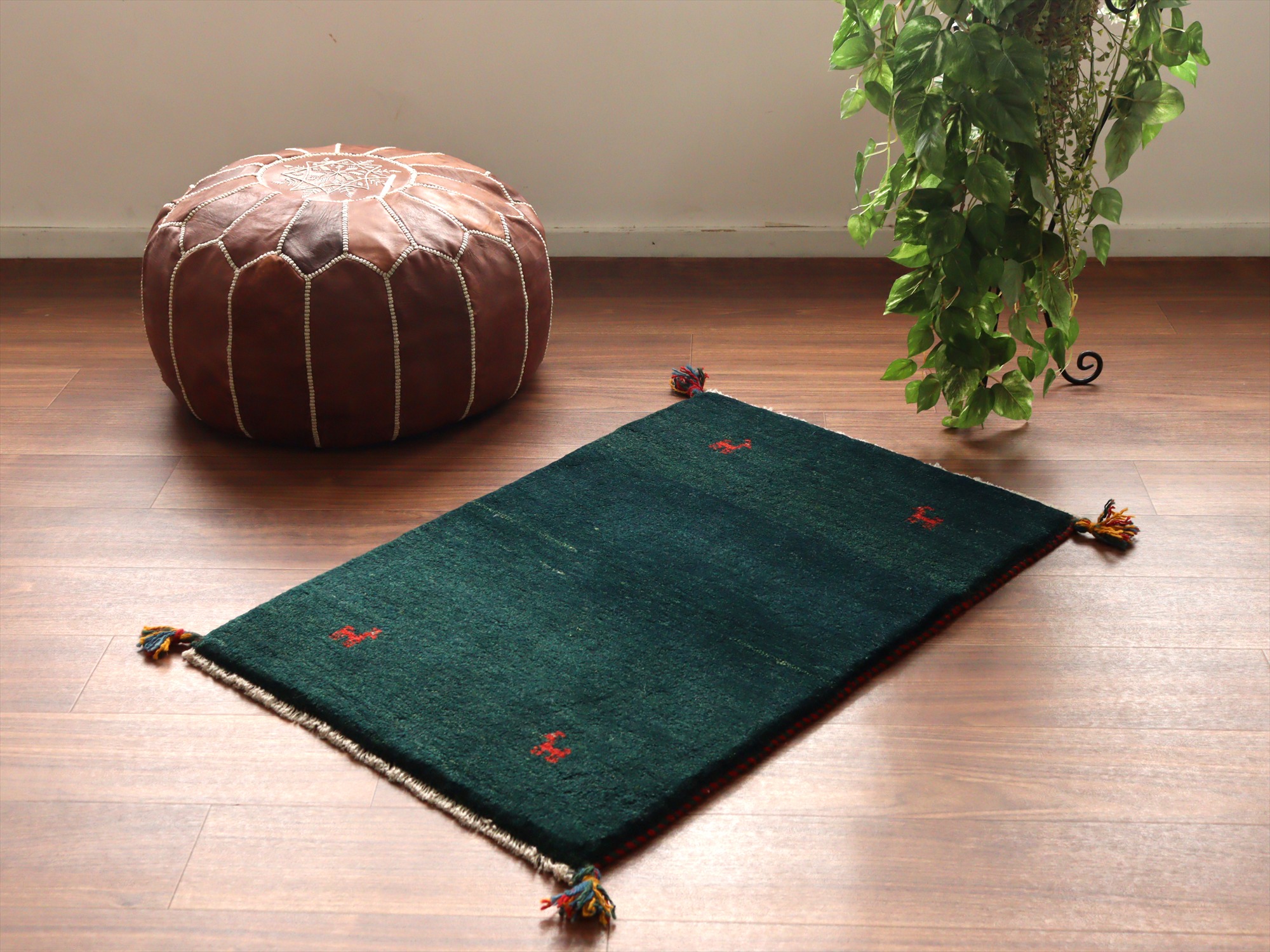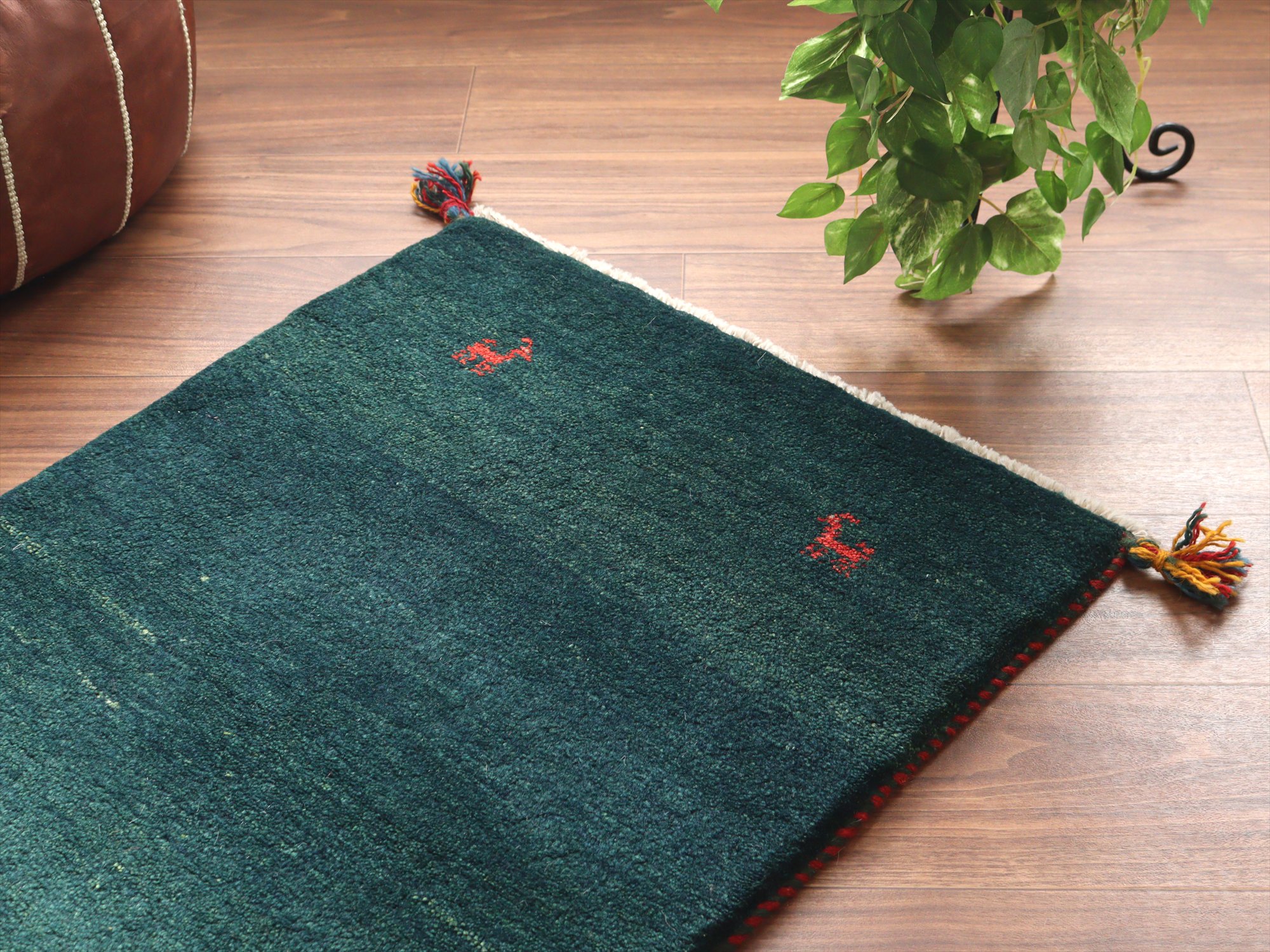 ギャッベ イラン産手織りラグ 90x60cm グリーン シンプルモチーフ