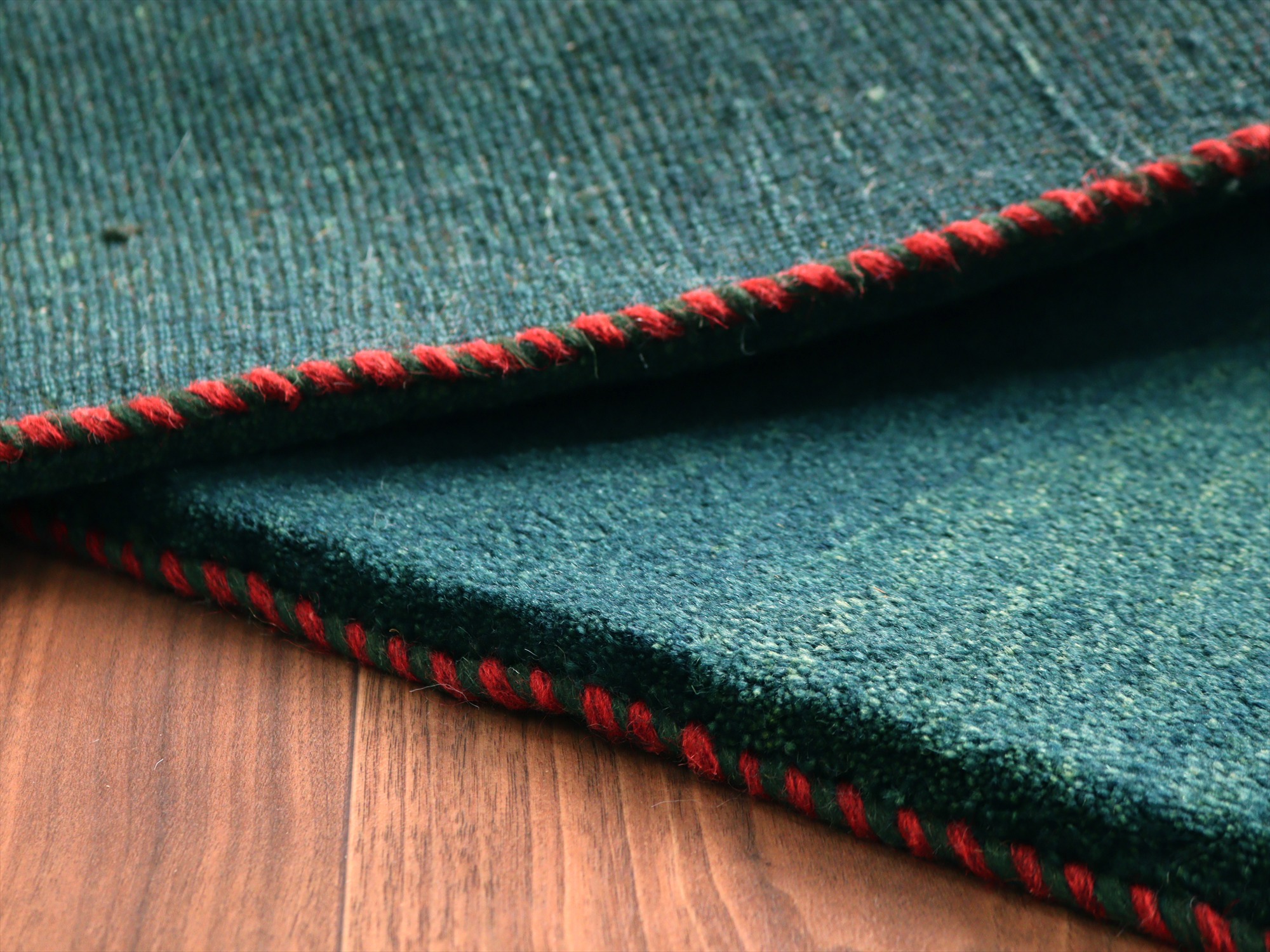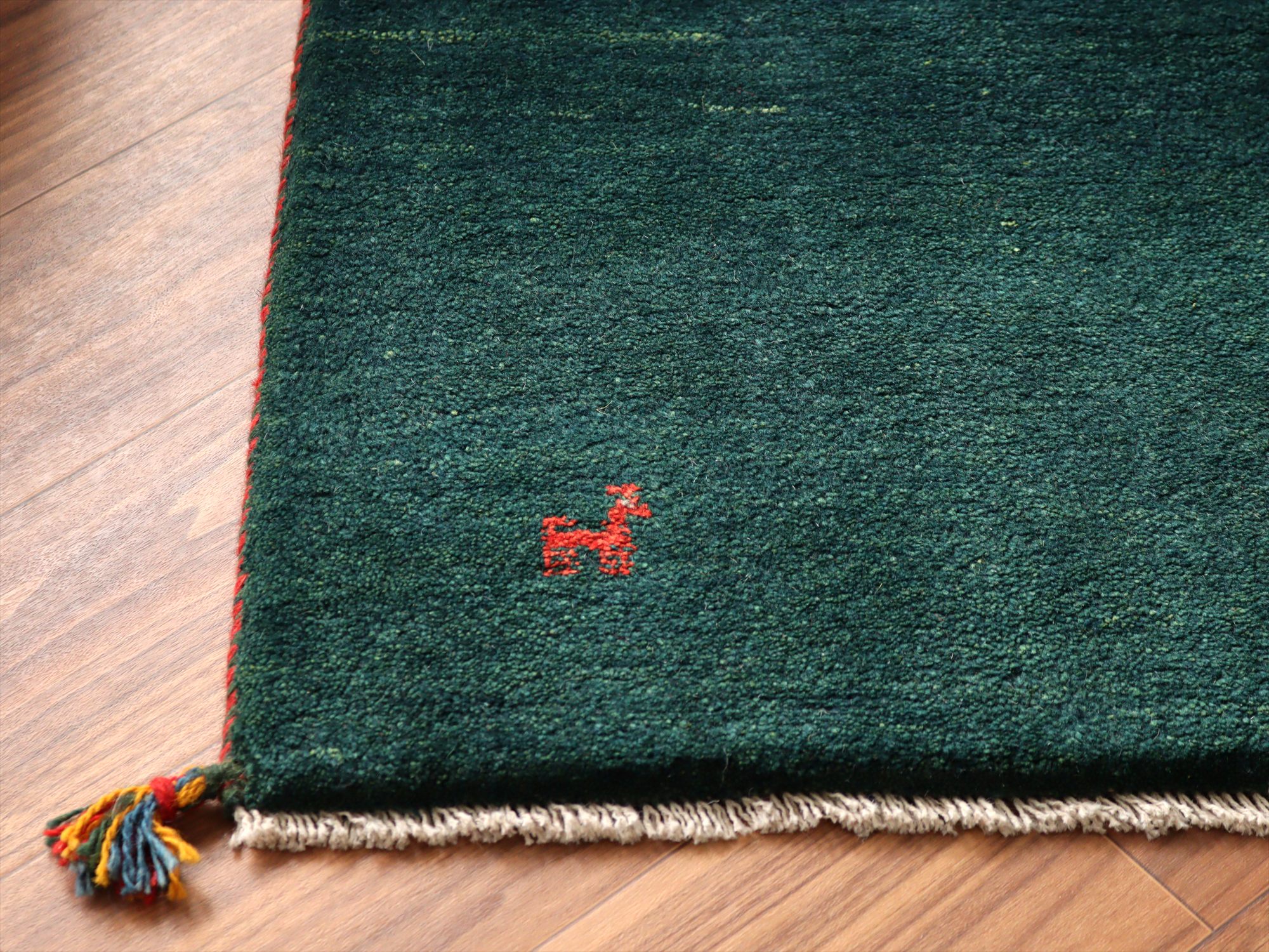 - ギャッベ イラン産手織りラグ 90x60cm グリーン シンプルモチーフ