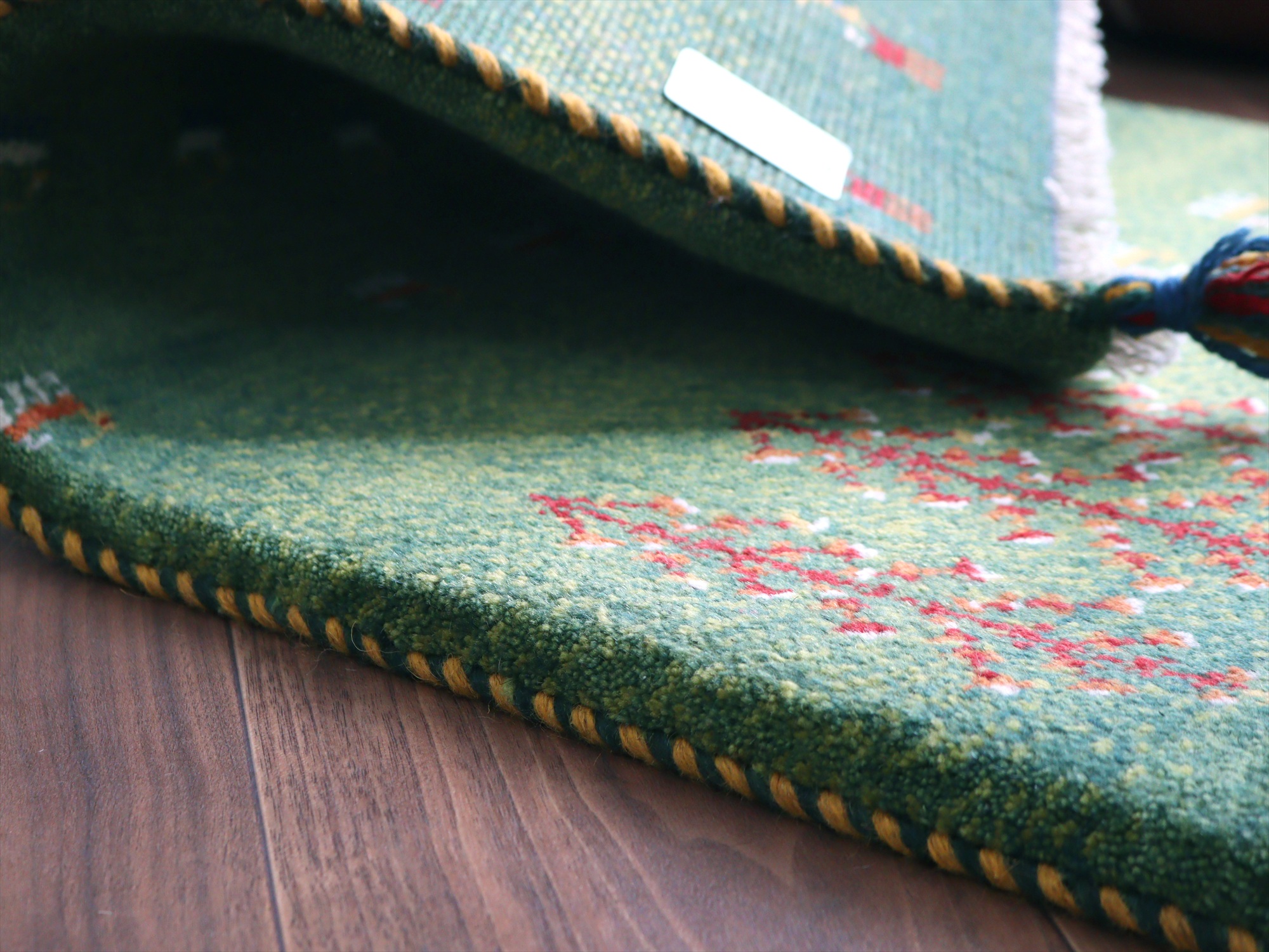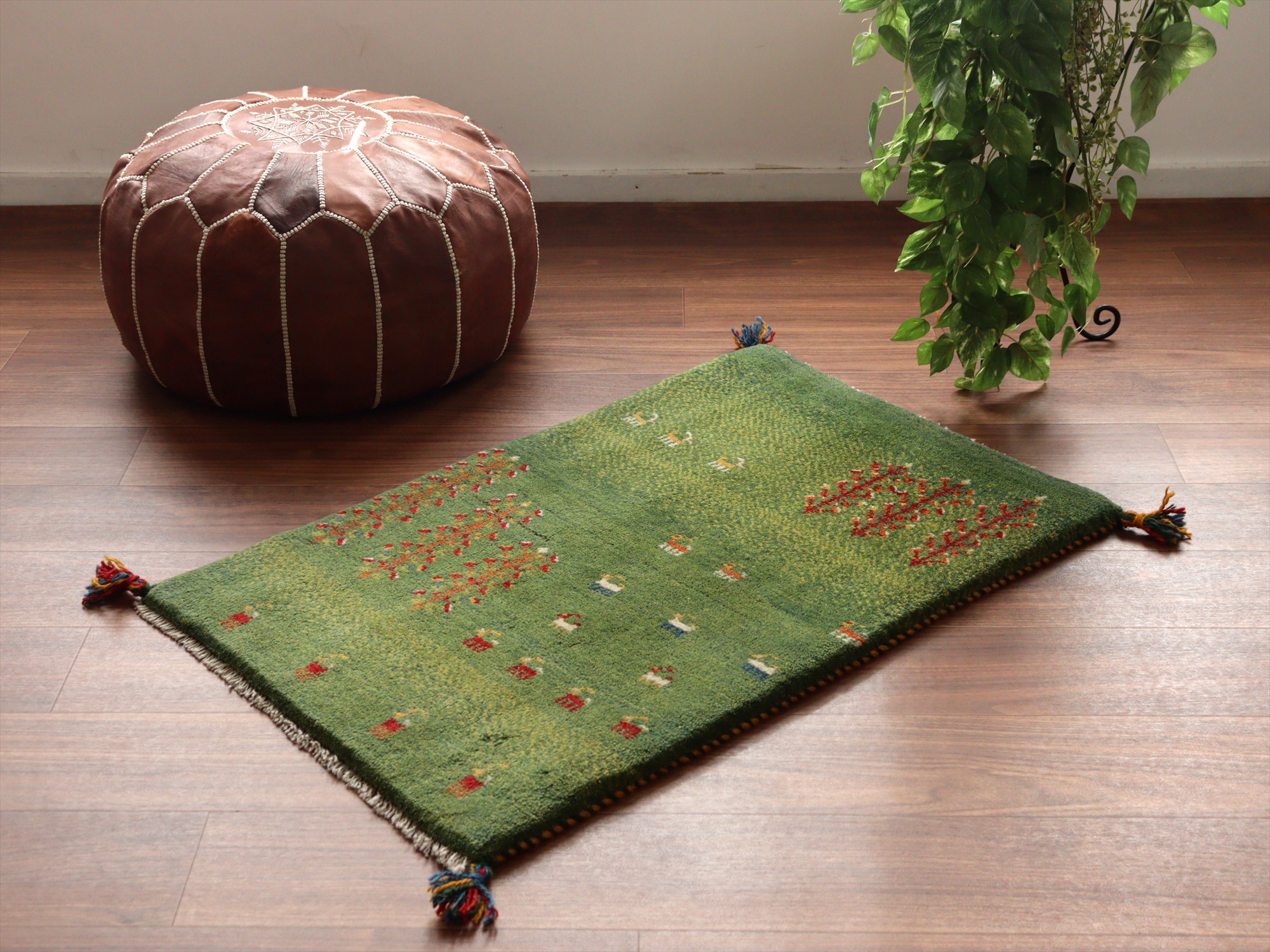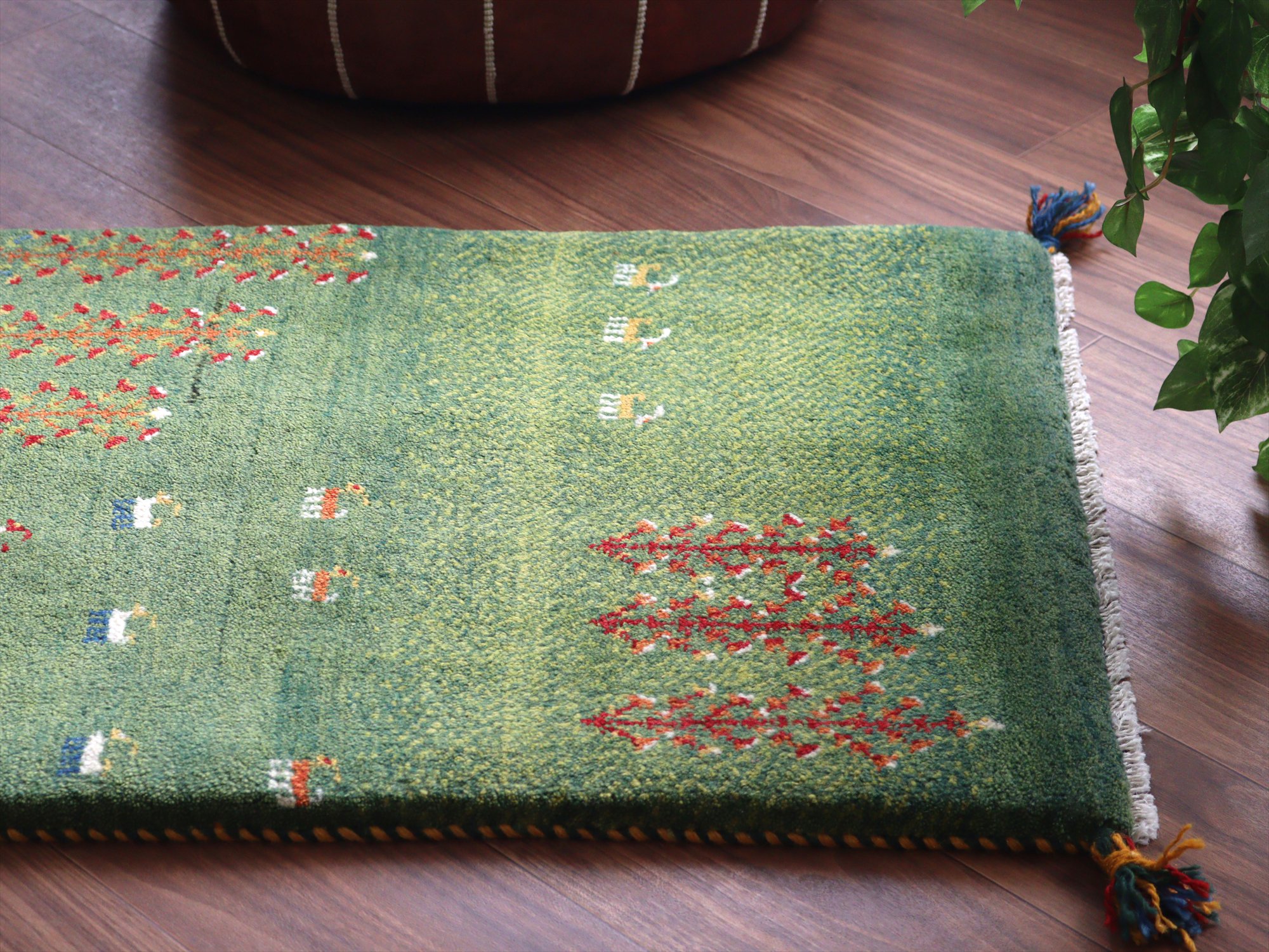 Key:ギャッベ, ギャベ, グリーン, 緑, ラグ, 絨毯, イラン, シラーズ, ペルシャ, バザールギャッベ, ポンポン, 手織り, 一点もの, 玄関マット, ふかふか, Gabbeh, Tribal rug, Shiraz, Fars, Iran, Persia, Wool, 一点もの, 現品販売,ガラタバザール