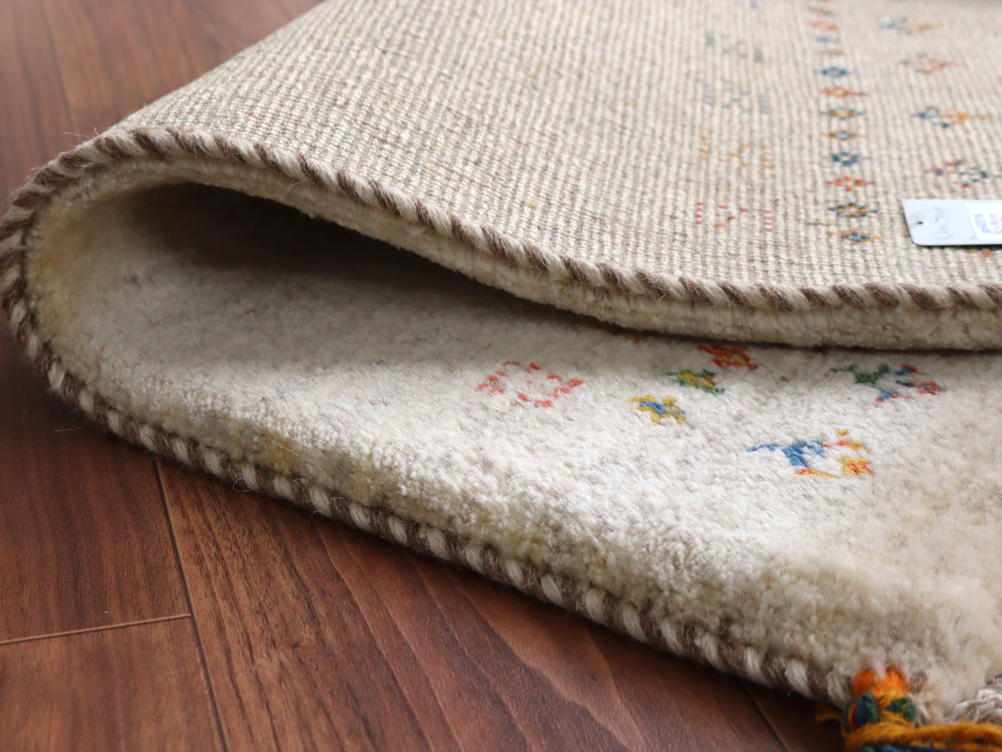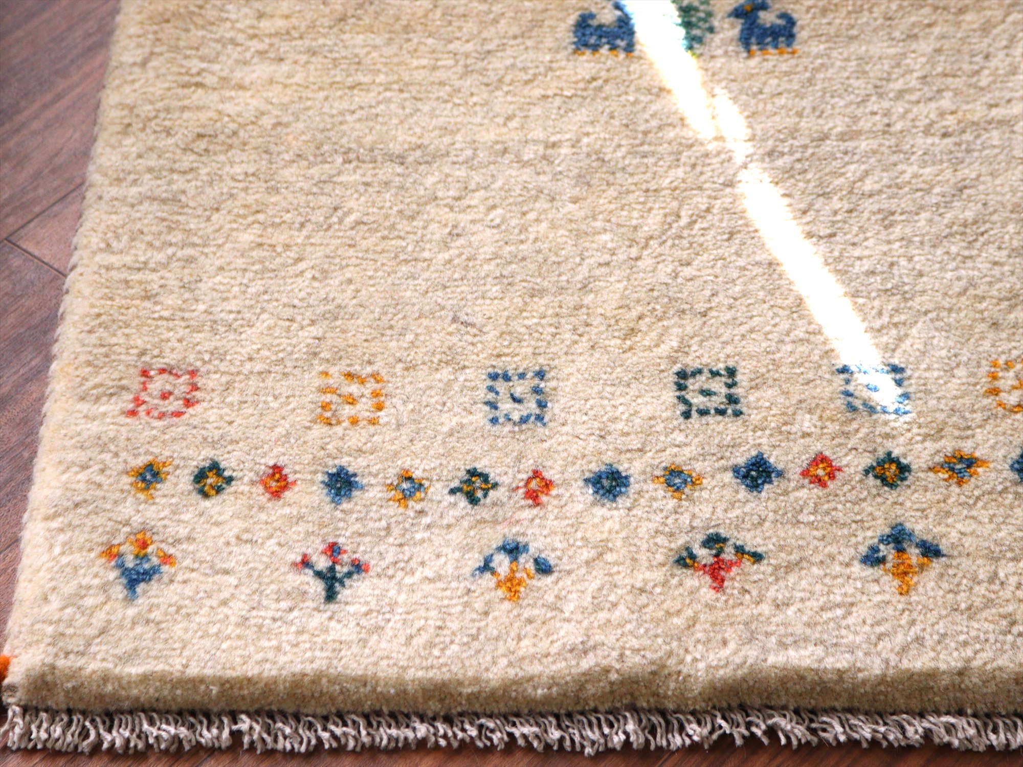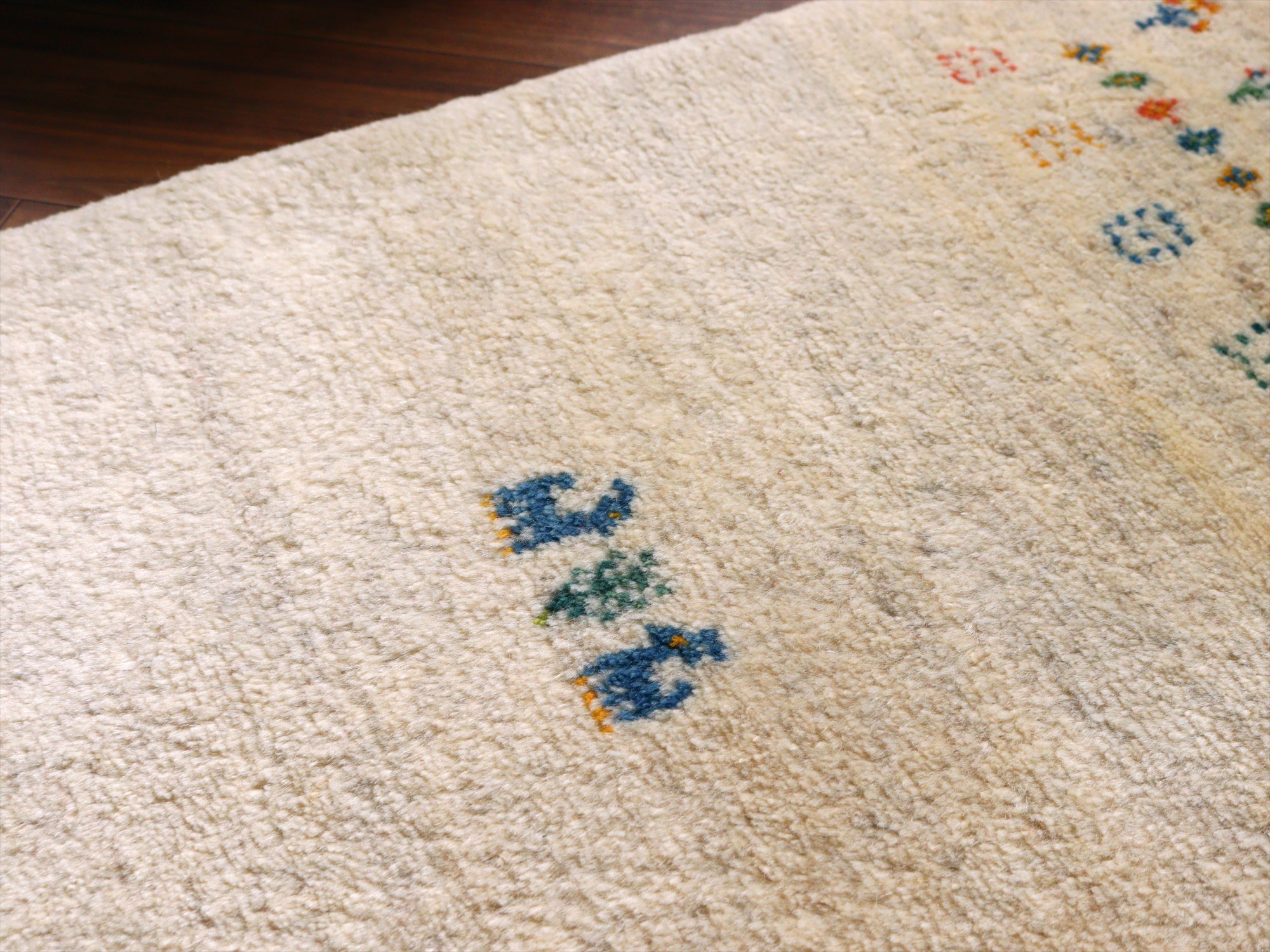 ギャッベ イラン産手織りラグ 92x60cm 動物と植物 アイボリー