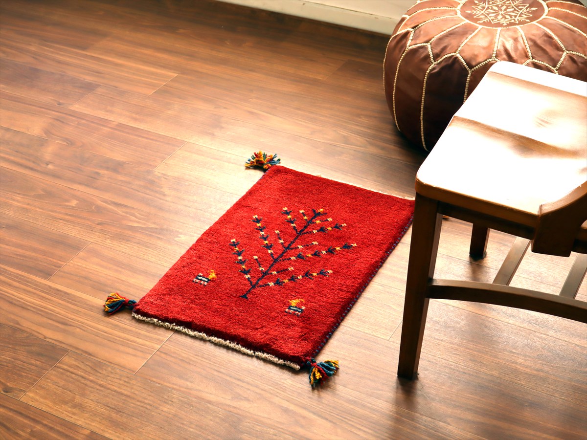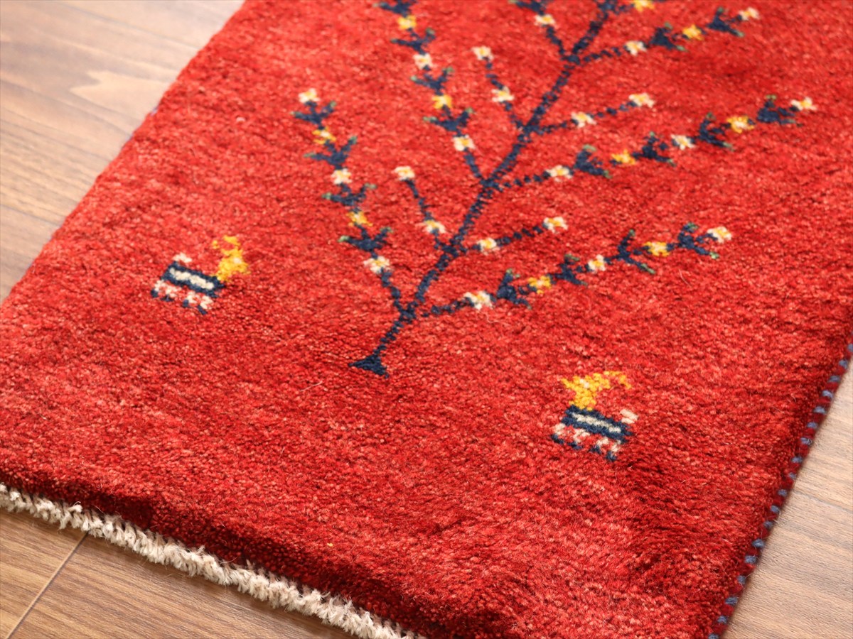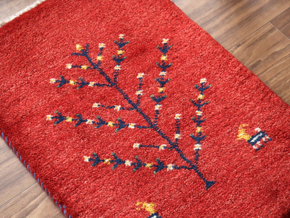 - ギャッベ ミニギャベ イラン産 60×41cm レッド 生命の樹と動物