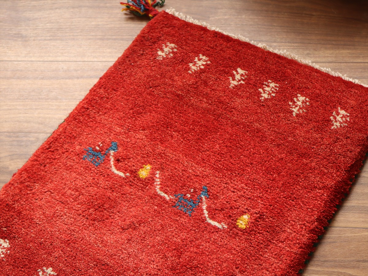 Key:Gabbeh, Persian, Iran, イラン直輸入, カシュカイ, ギャッベ, ギャベ, レッド, 赤, 玄関マット, 手織り, ウール100%, 一点もの 現品販売 部族絨毯 トライバルラグ Shiraz, Area Rug, Carpet, Handmade, Hand knotted, ガラタバザール, 東京、中野区