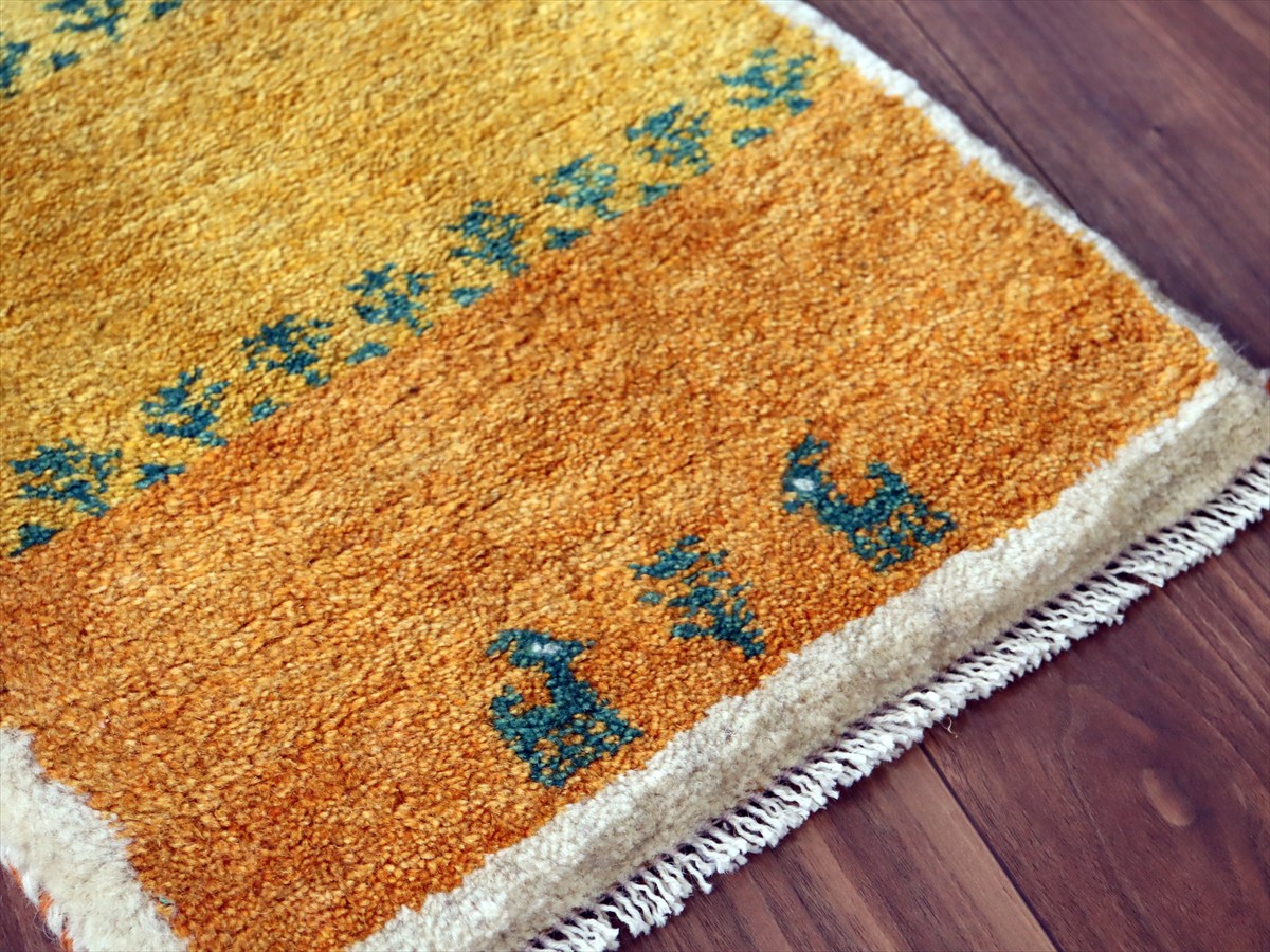 ギャッベ ミニギャベ イラン産 58×39cm イエローオレンジ 動物と生命の樹