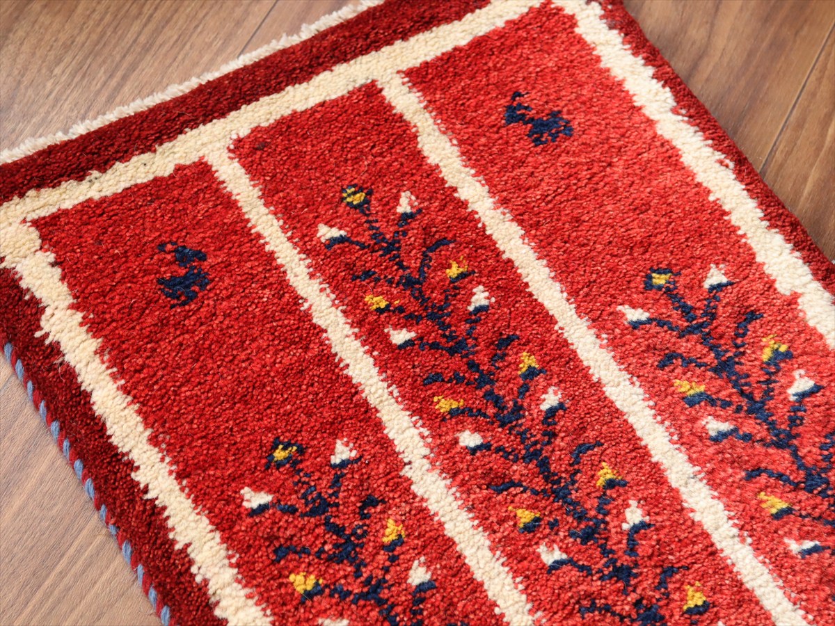 ギャッベ ミニギャベ イラン産 58×42cm レッド 連なる生命の樹と動物