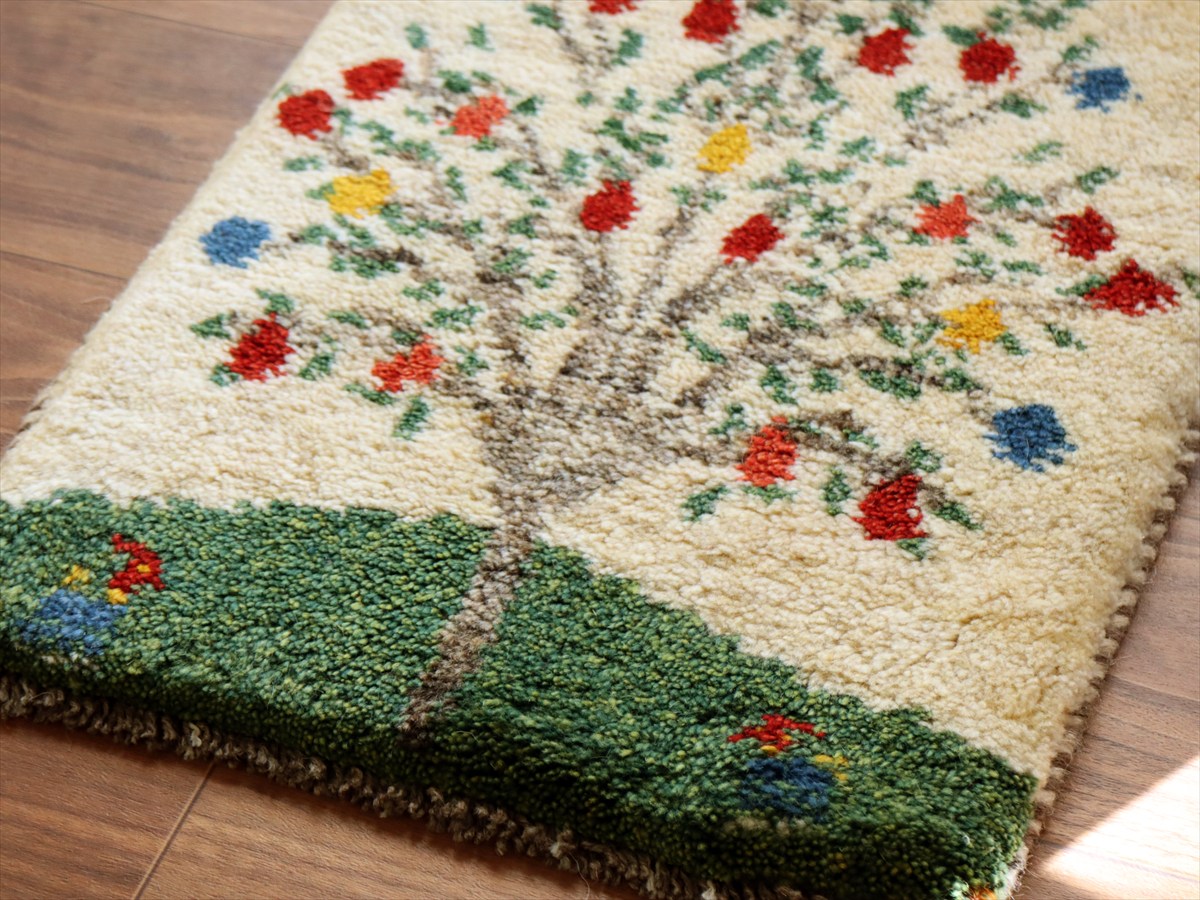 - ギャッベ ミニギャベ イラン産 55×40cm ナチュラルアイボリー カラフルなザクロの樹