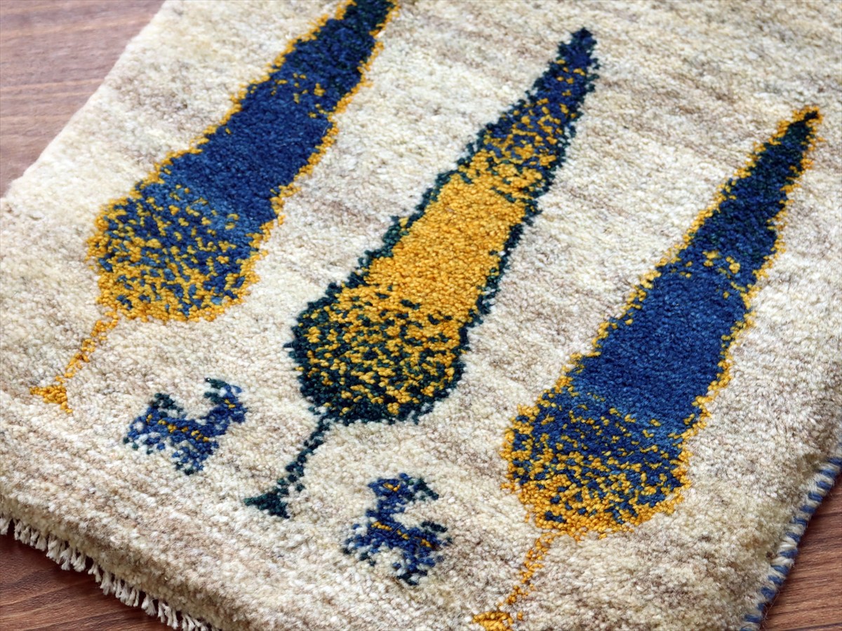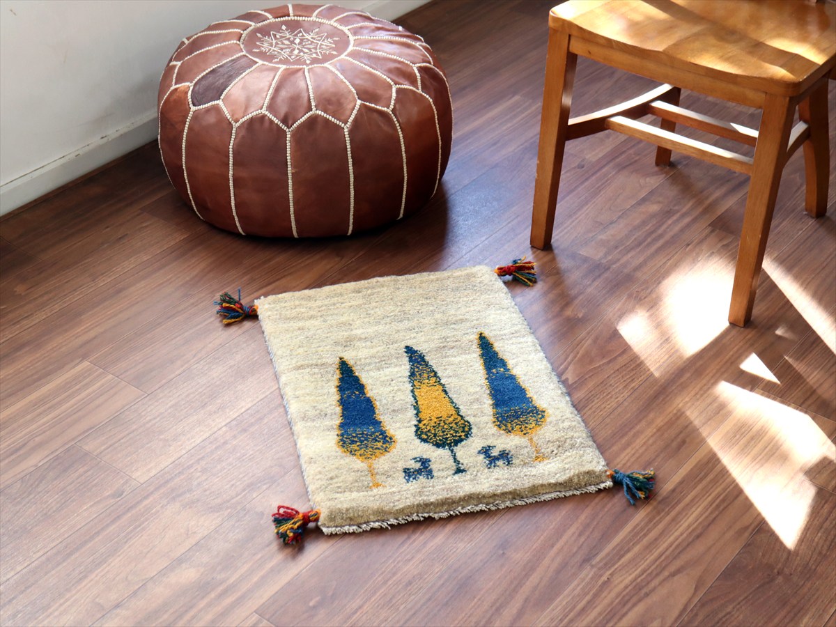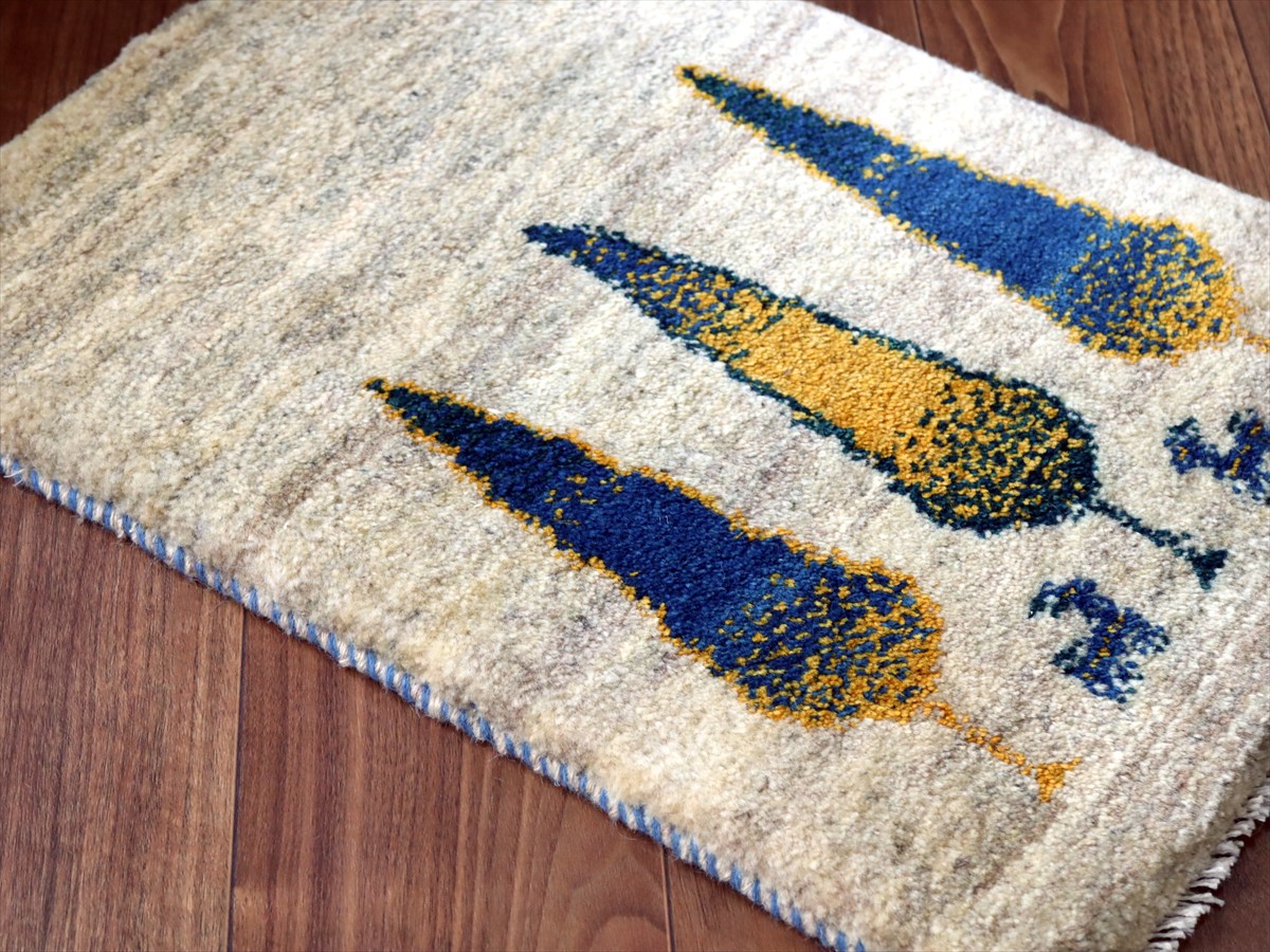 ギャッベ ミニギャベ イラン産 60×45cm ナチュラルアイボリー 糸杉と動物