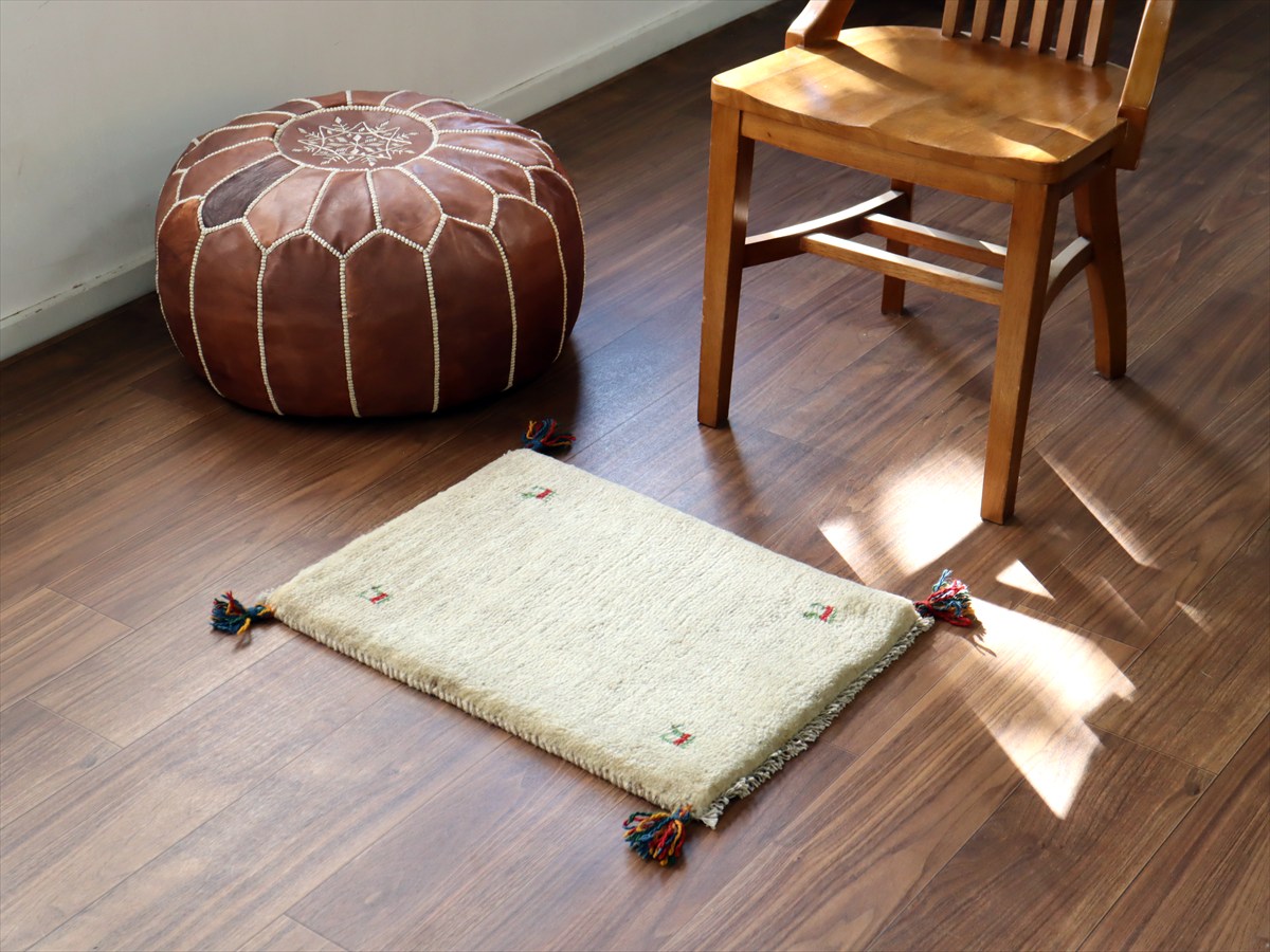 - ギャッベ ミニギャベ イラン産 61×44cm ナチュラルアイボリー 四隅に動物