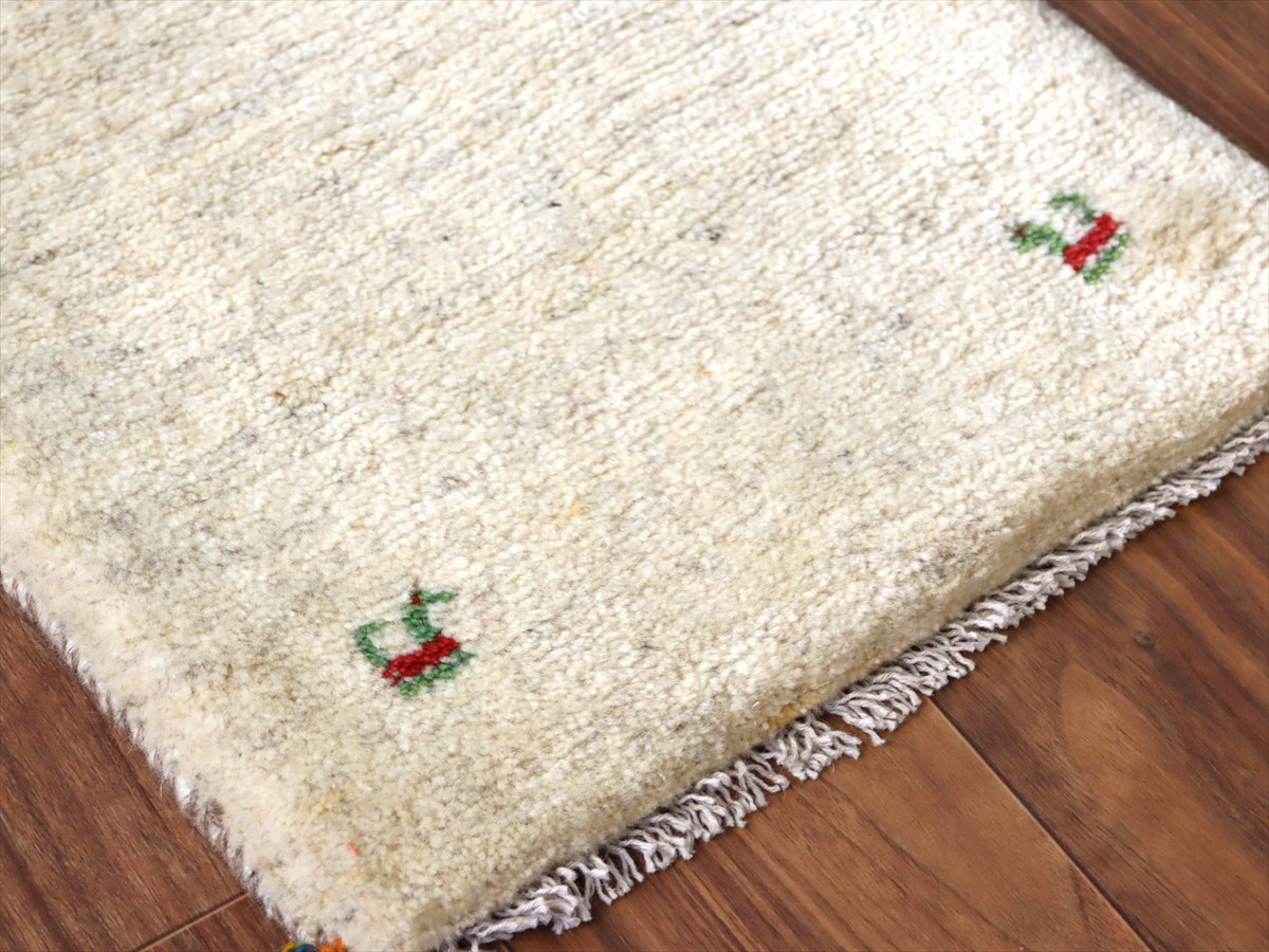 ギャッベ ミニギャベ イラン産 61×44cm ナチュラルアイボリー 四隅に動物