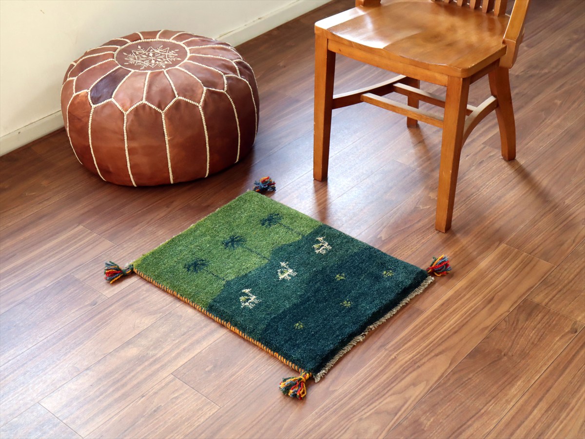ギャッベ ミニギャベ イラン産 60×45cm グリーン 丘の上のラクダ