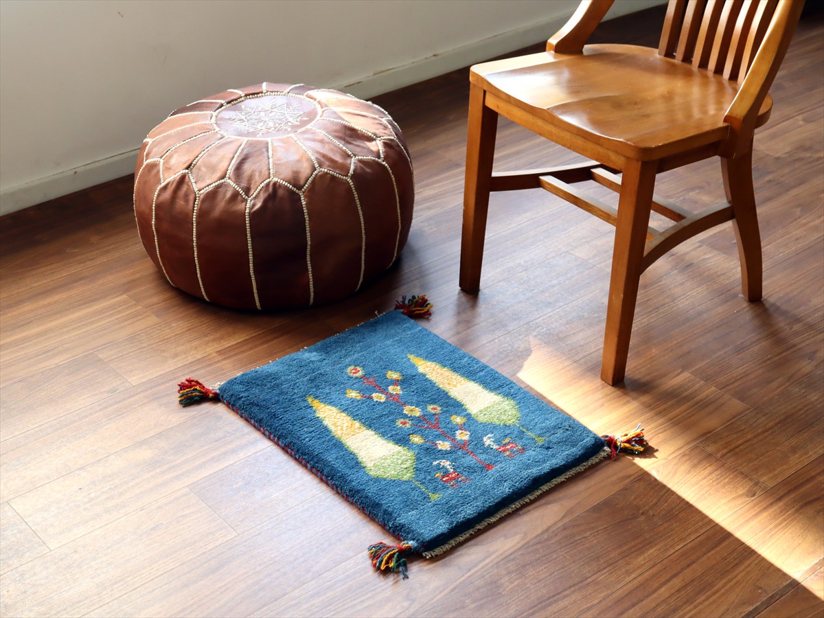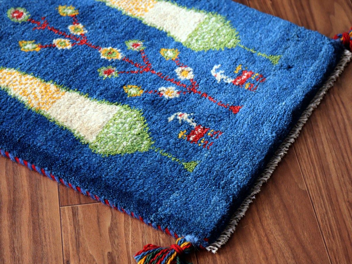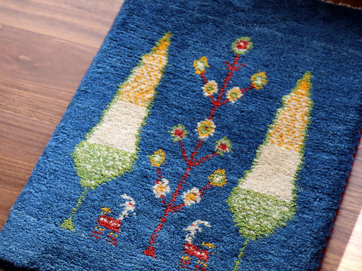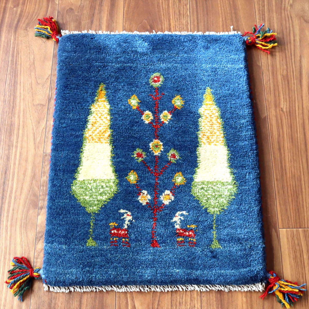 ギャッベ ミニギャベ イラン産 57×42cm ブルー 糸杉と動物