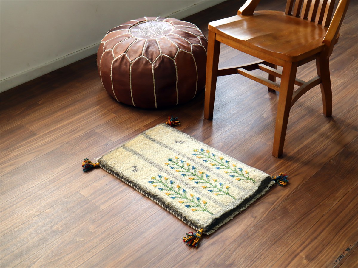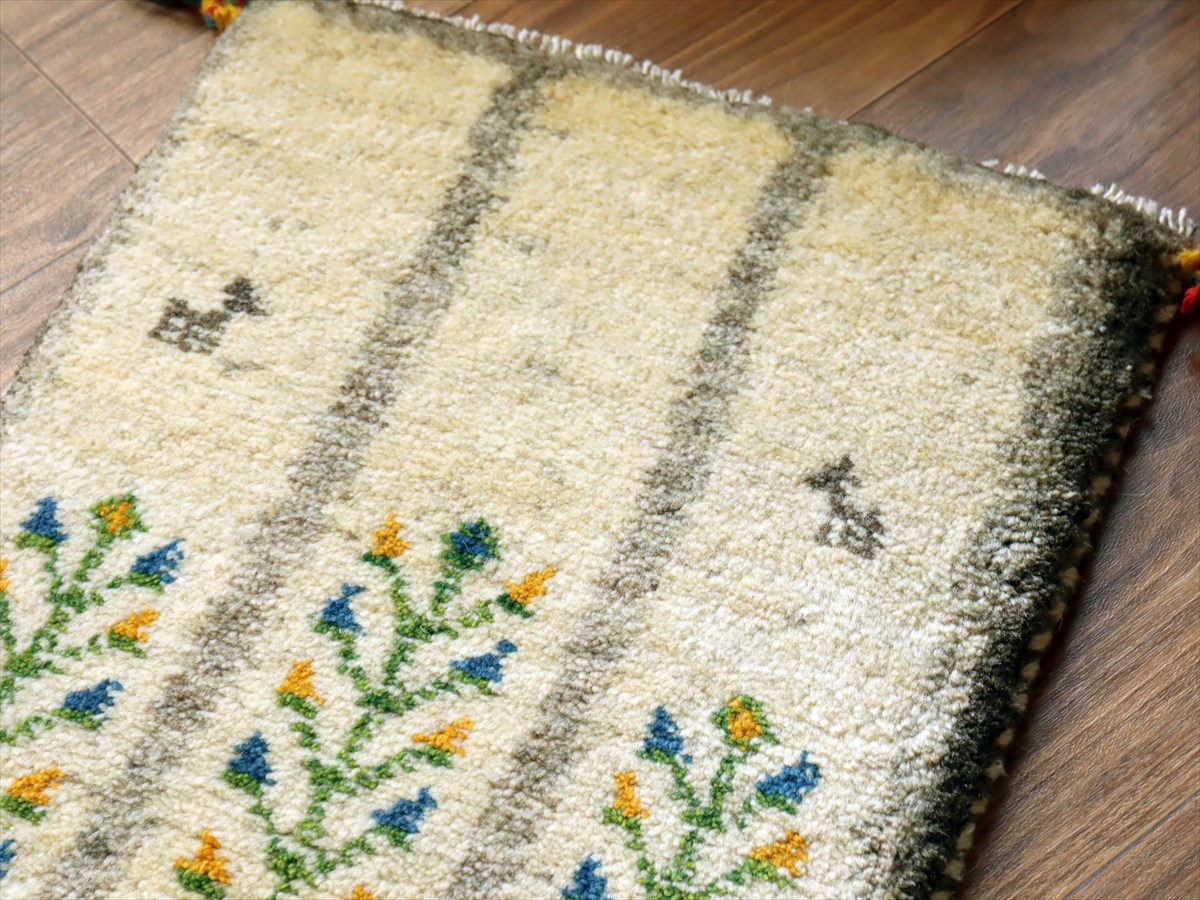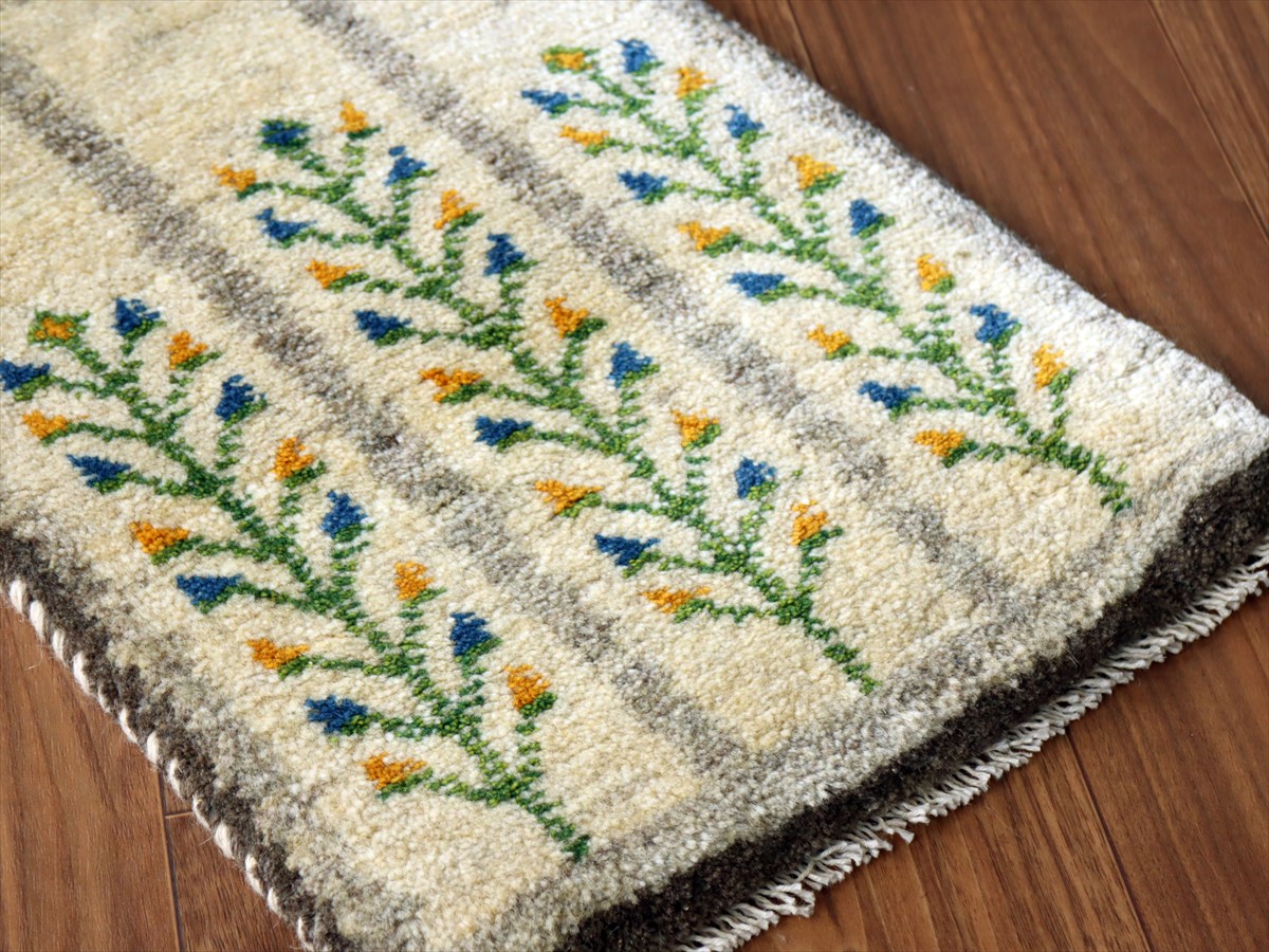ギャッベ ミニギャベ イラン産 61×41cm ナチュラルアイボリー 連なる生命の樹と動物