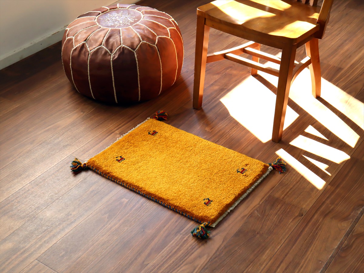 ギャッベ ミニギャベ イラン産 59×41cm イエローオレンジ 動物モチーフ