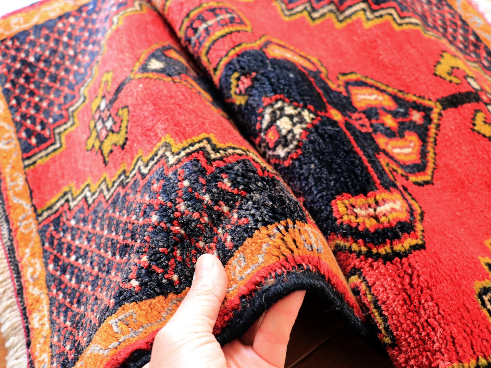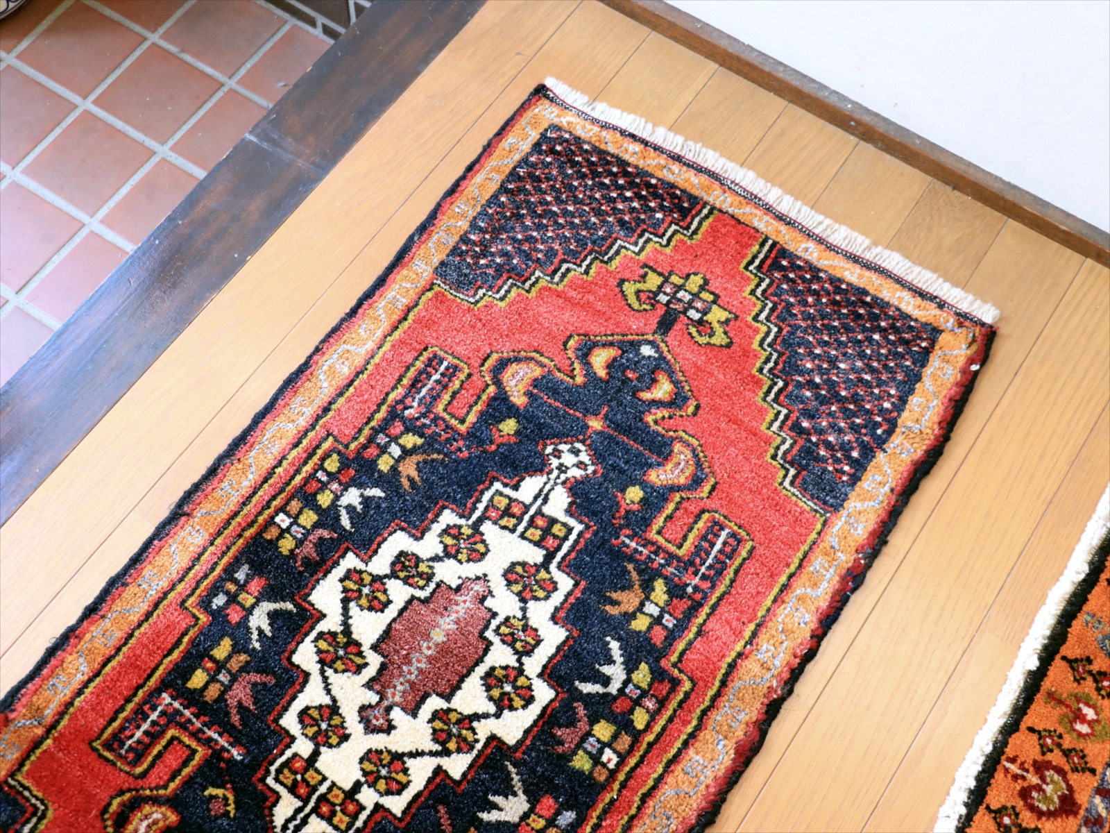 トライバルラグ ヤストゥク トルコ手織り絨毯100×48cm シワス レッド&ブラック