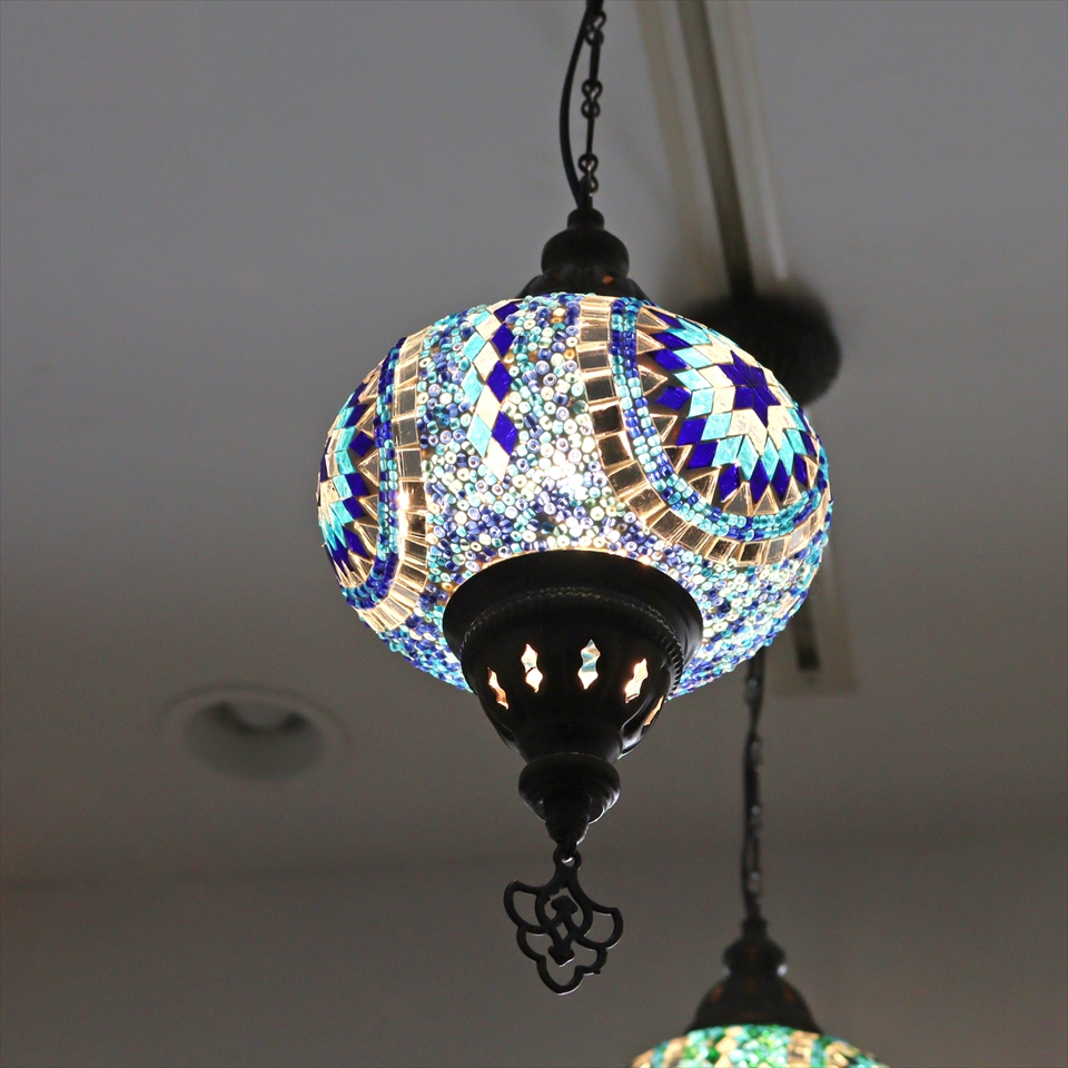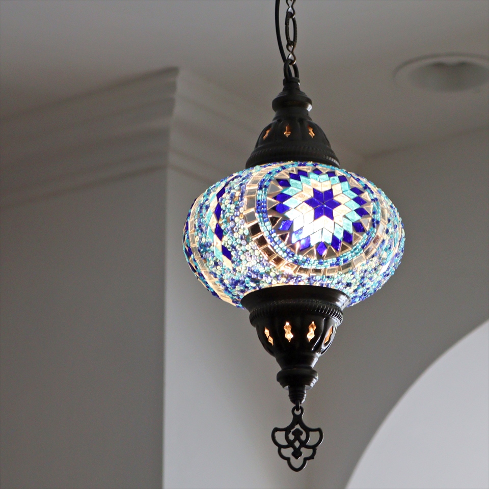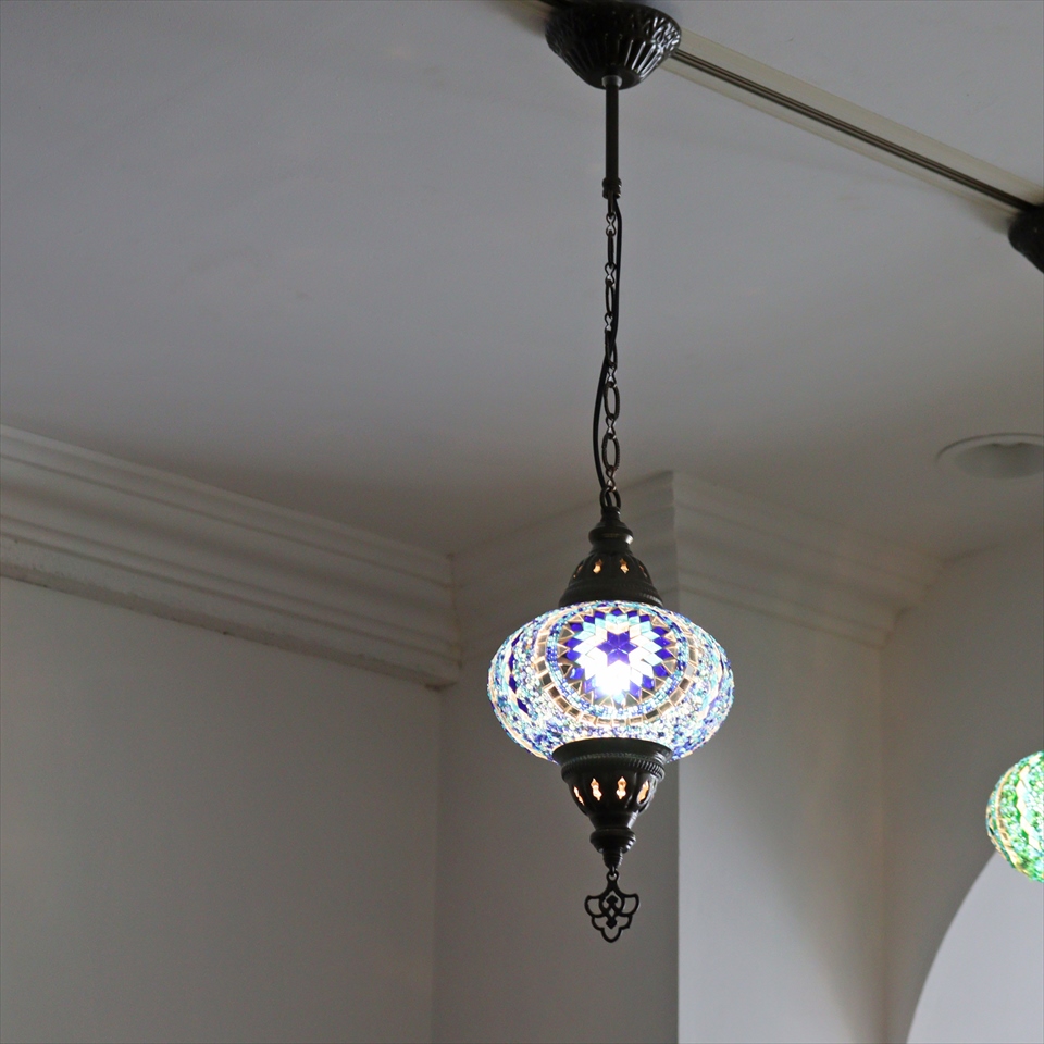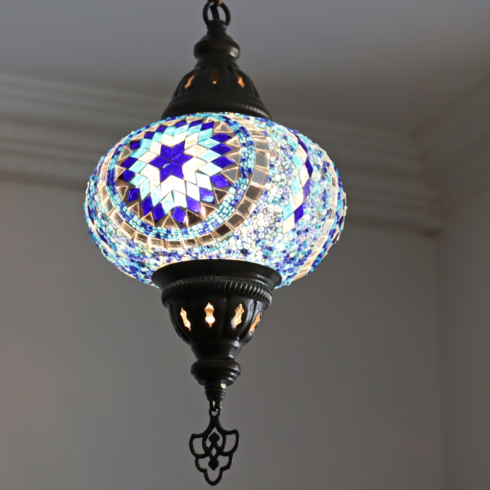 - トルコランプ モザイクランプ ペンダントランプ 直径16cm ブルー