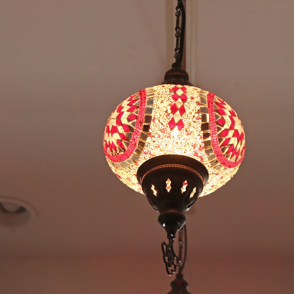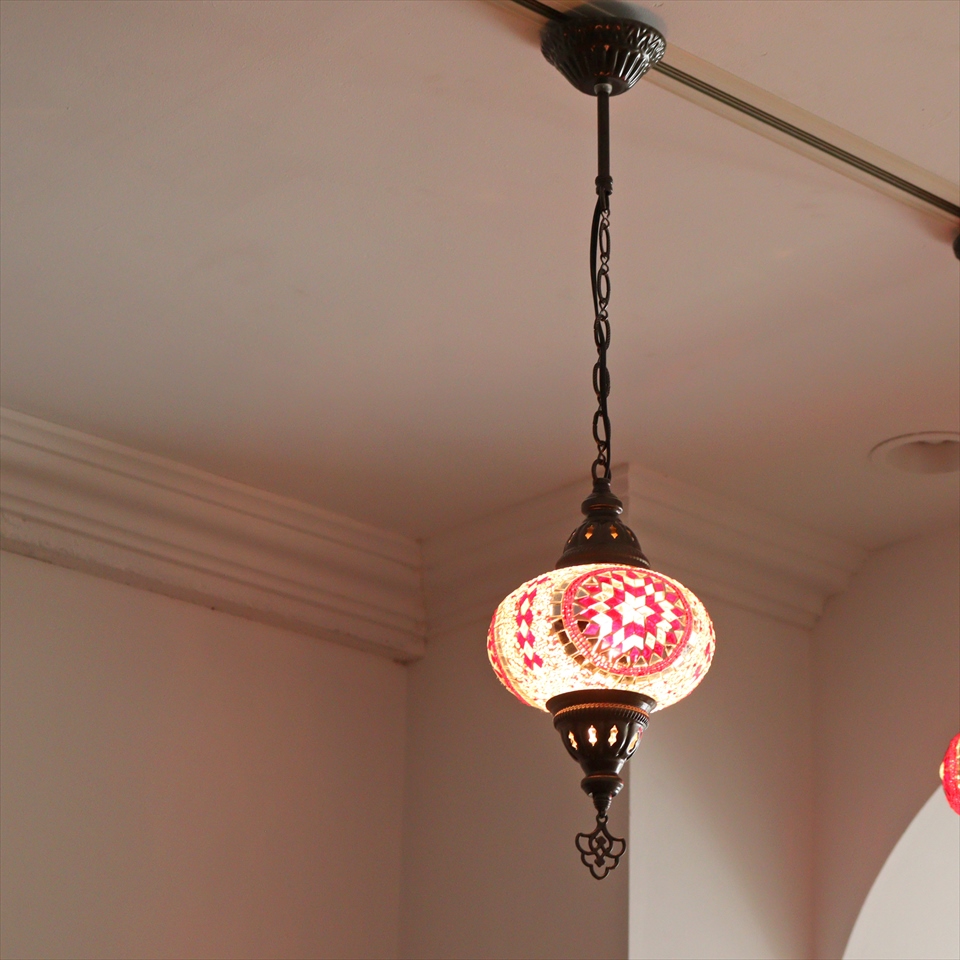- トルコランプ モザイクランプ ペンダントランプ 直径16cm レッド