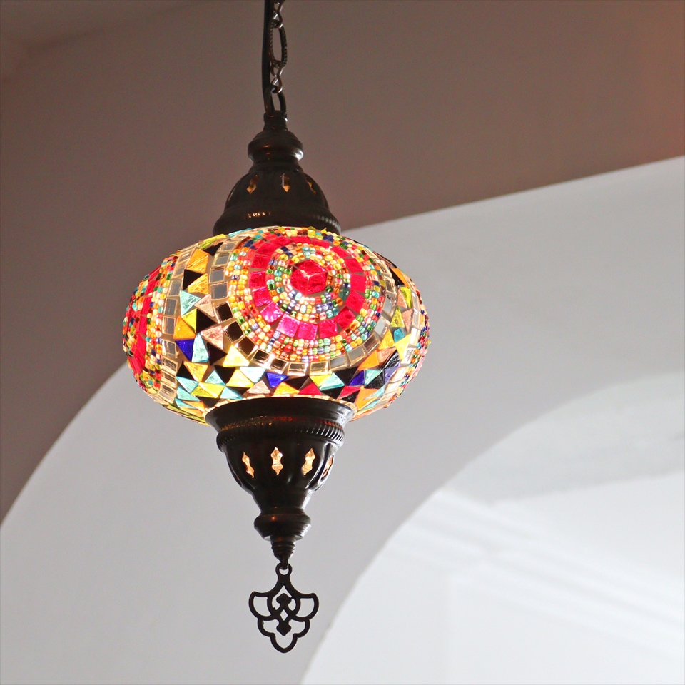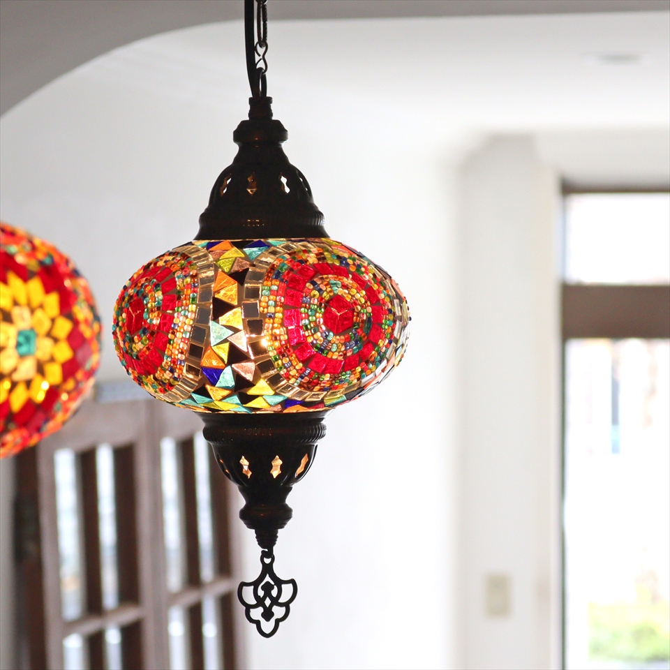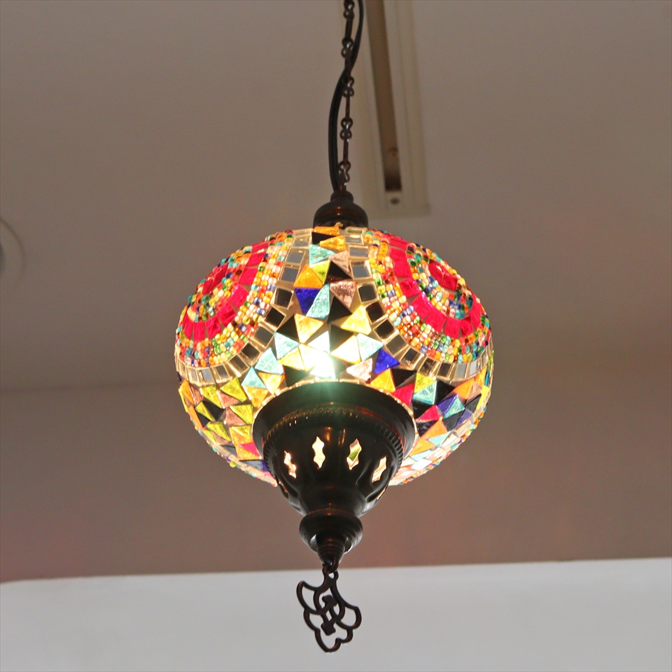 - トルコランプ モザイクランプ ペンダントランプ 直径16cm ミックスカラー