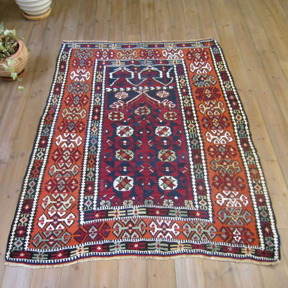 アンティークキリム チャンクル 151×116cm セッヂャーデ コチニールピンクのミフラープ