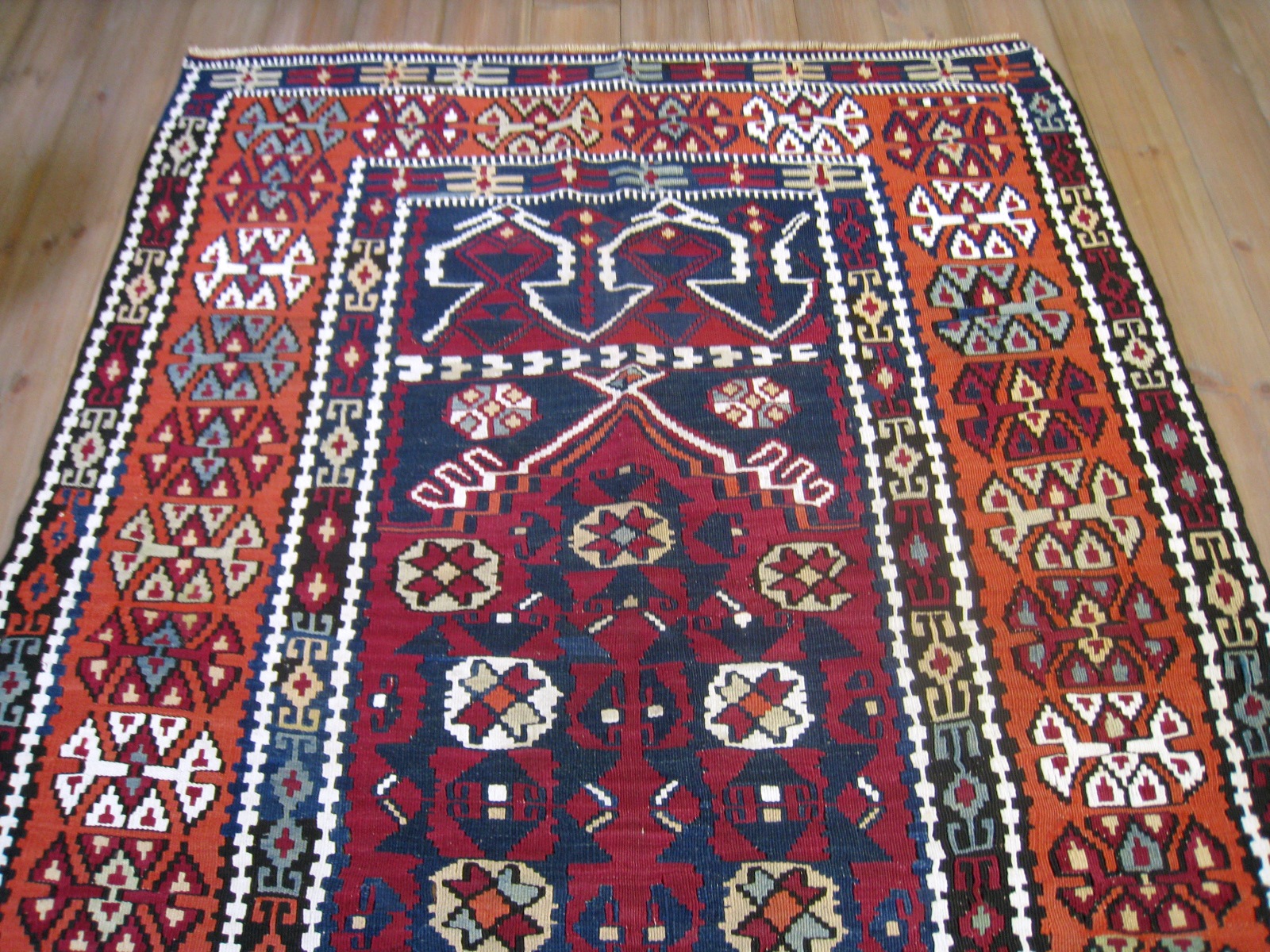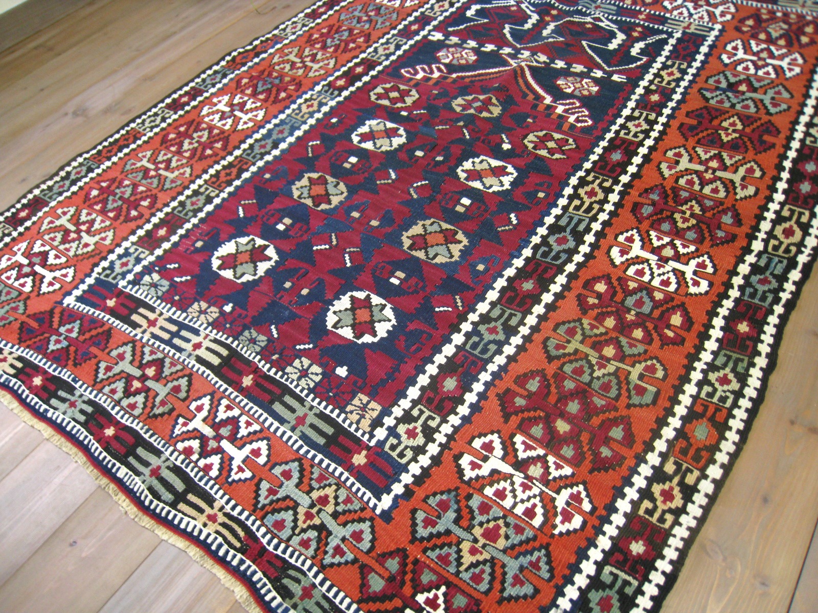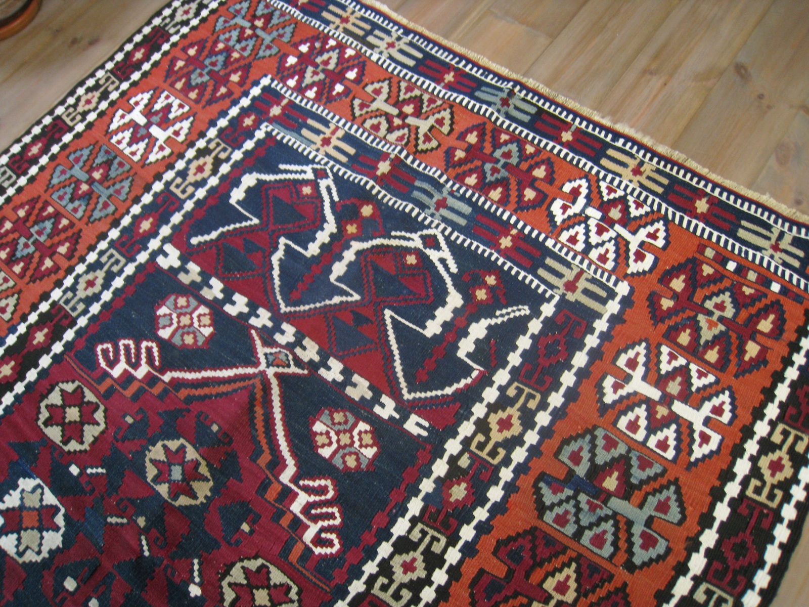 - アンティークキリム チャンクル 151×116cm セッヂャーデ コチニールピンクのミフラープ