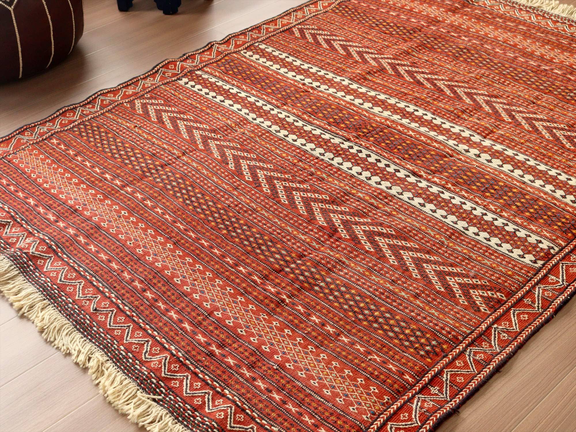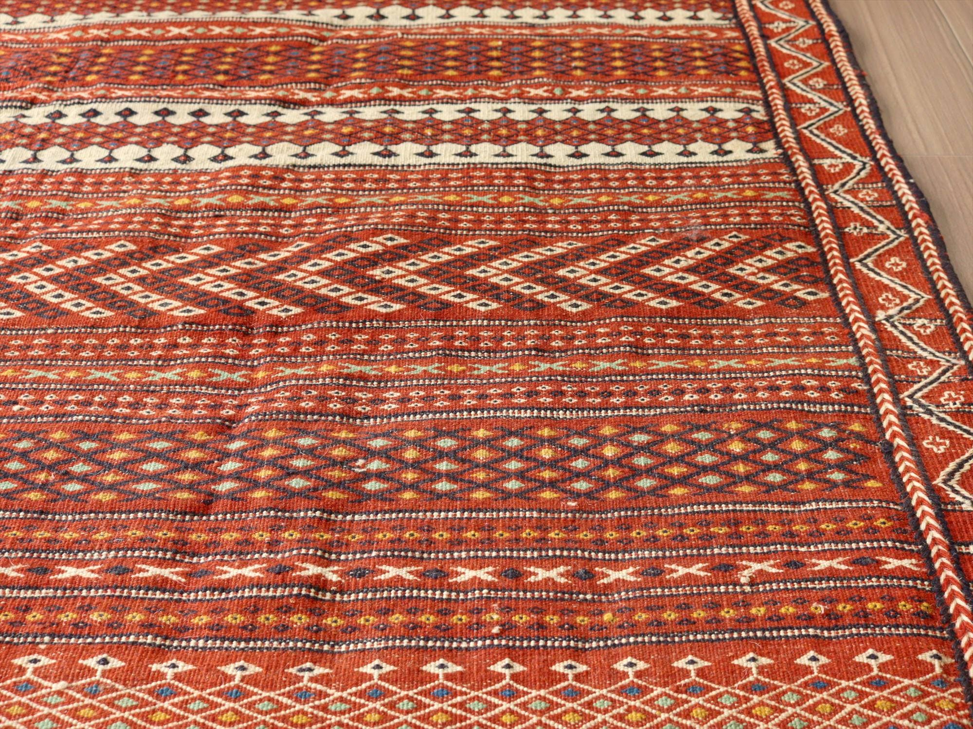 - 刺繍のようなスザンニ織りのキリム イラン東北部カラート 200×145cm 暖色系のボーダー