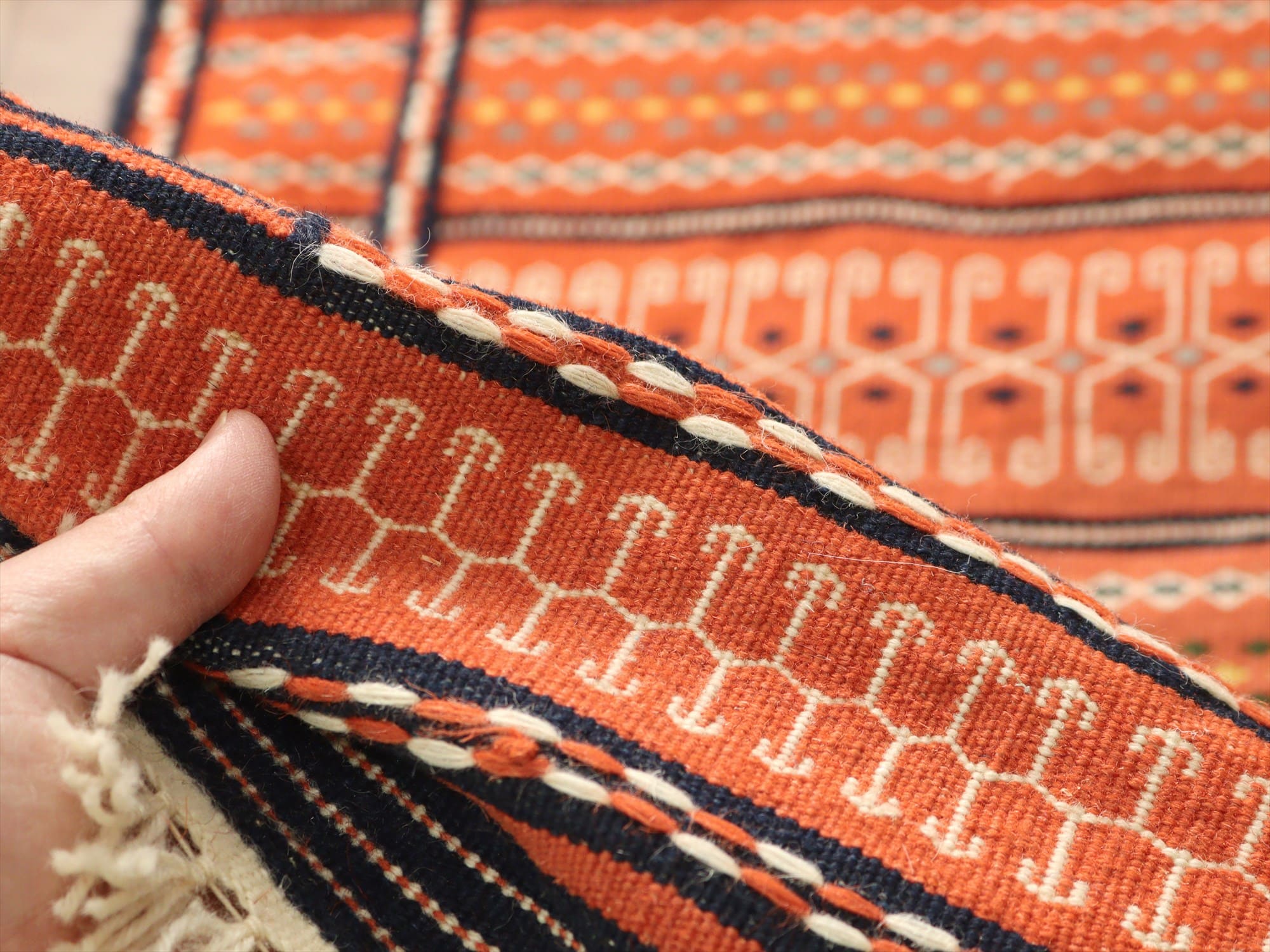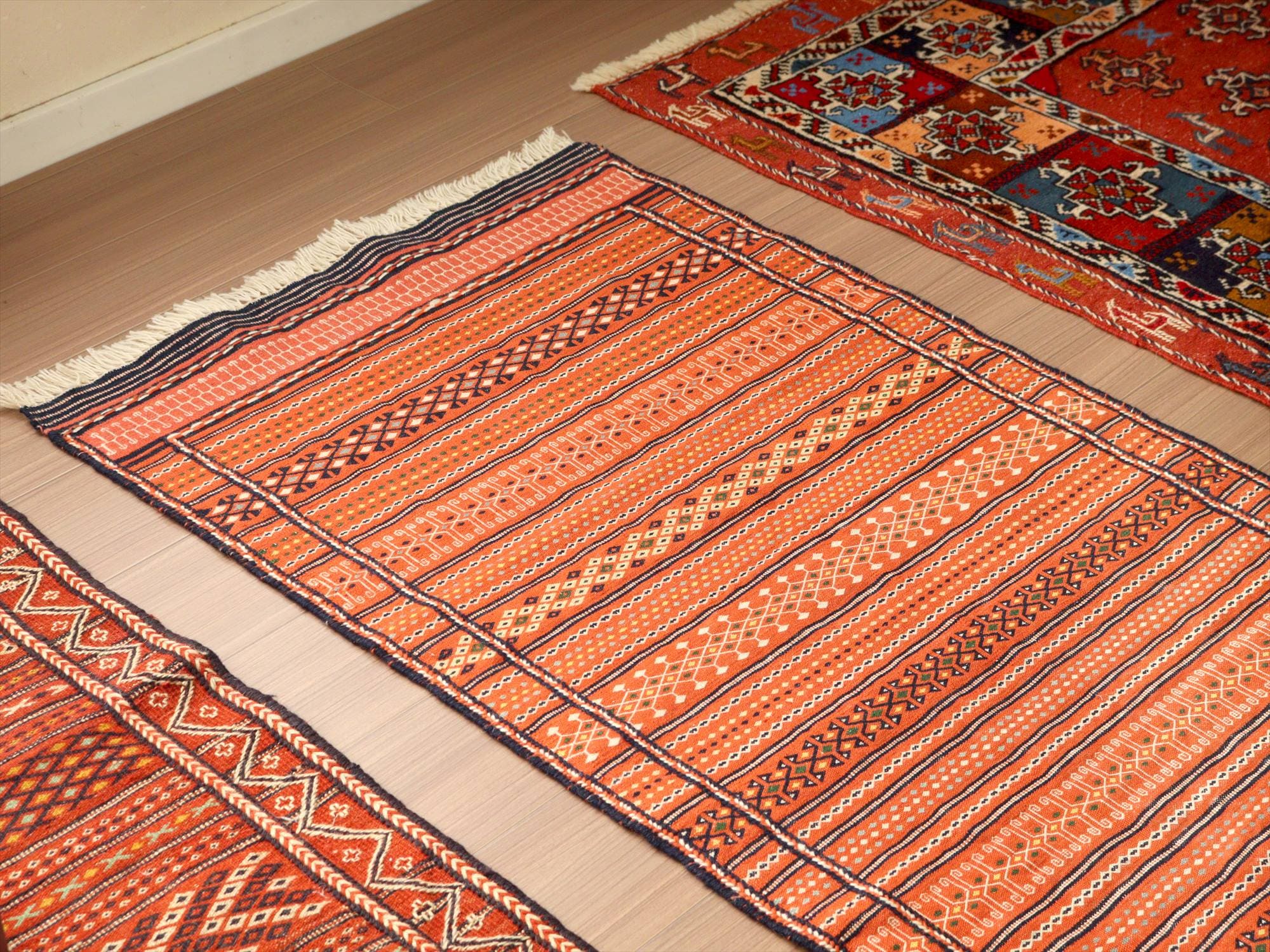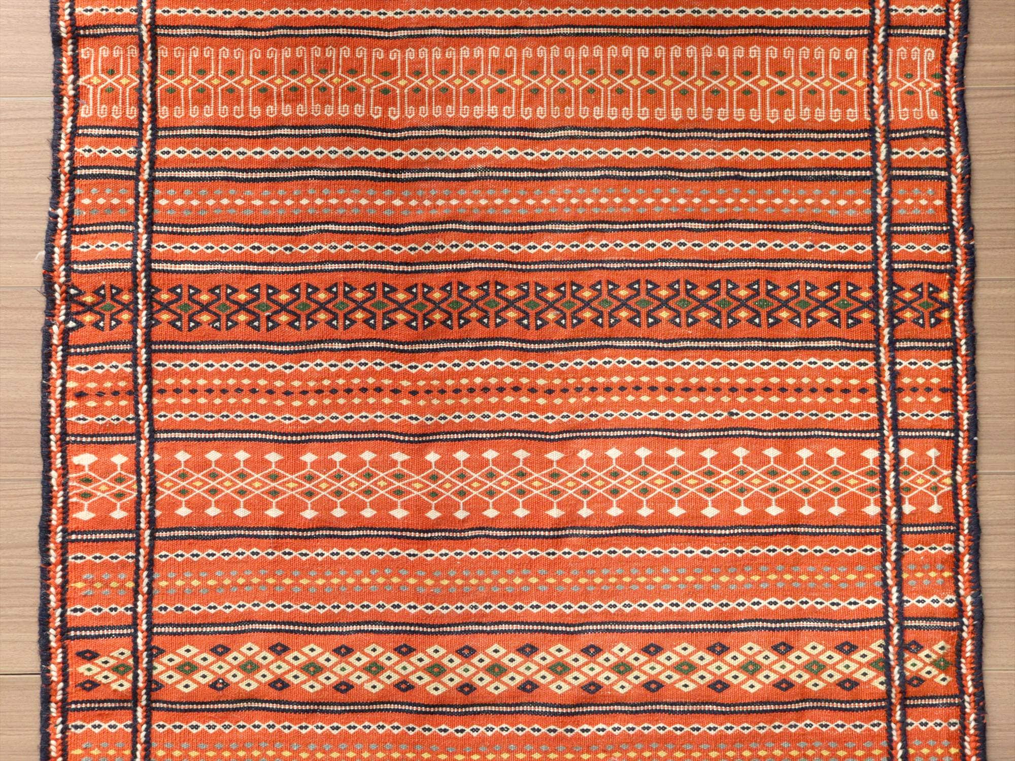 - 刺繍のようなスザンニ織りのキリム イラン東北部カラート 198×72cm 幾何学模様のボーダーデザイン