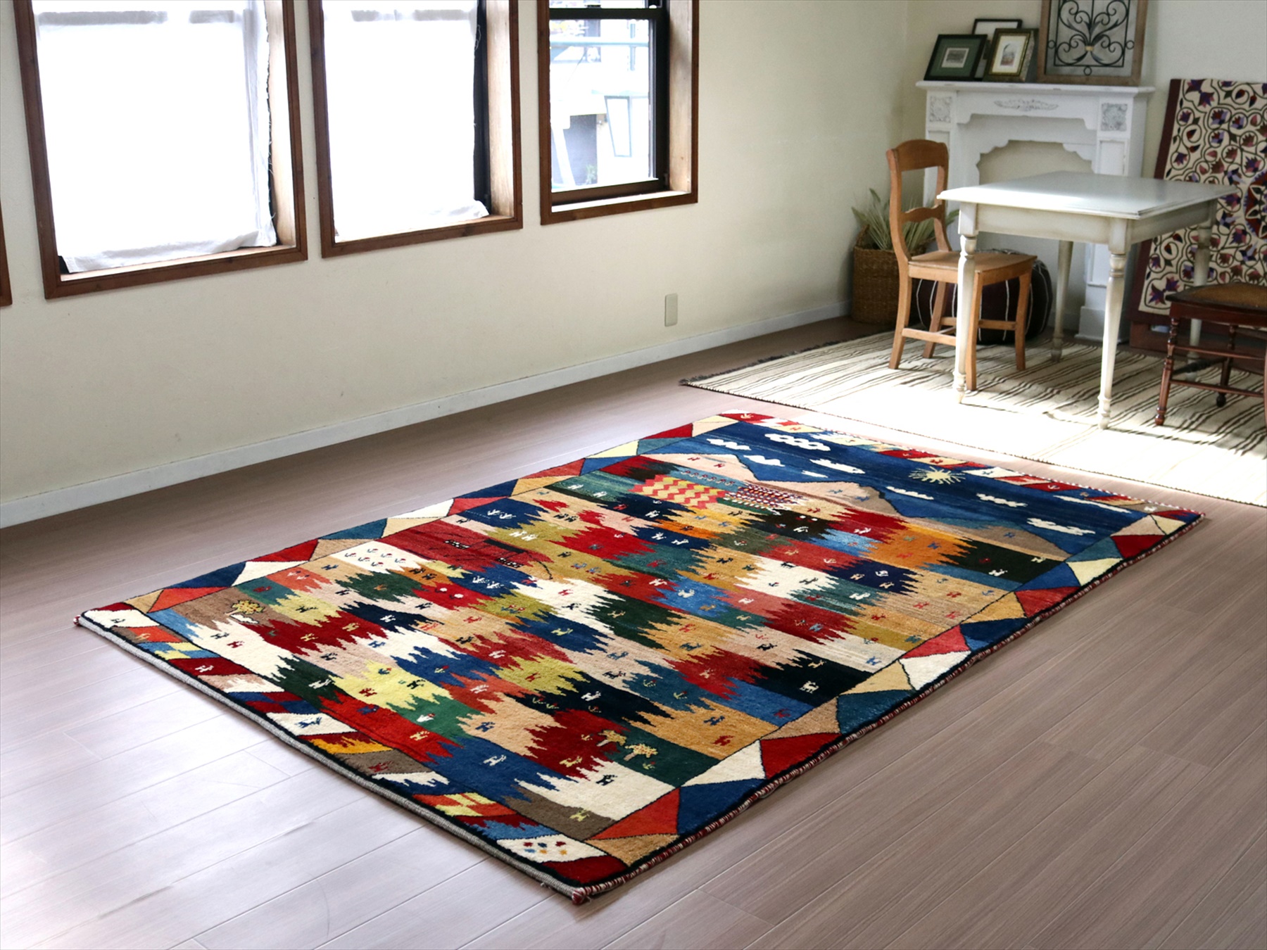 Key:Gabbeh, Handmade, Hand knotted, Tribal rug, Iran carpet, Wool, Natural Dye, ギャッベ, ギャベ, ペルシャ絨毯, ラグ, ウール製, イラン, 手織り, じゅうたん, 絨毯, ガラタバザール