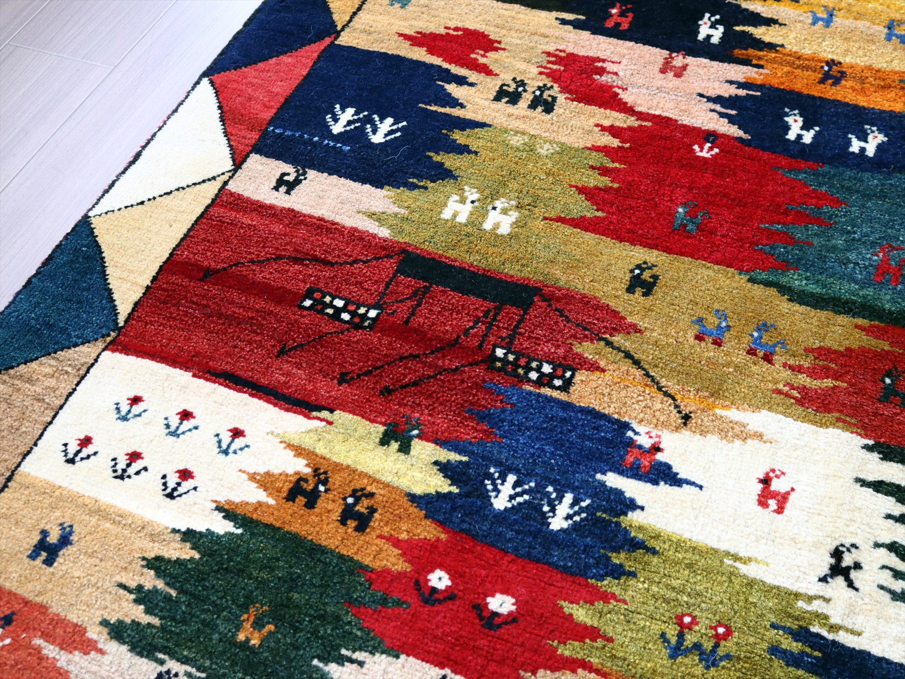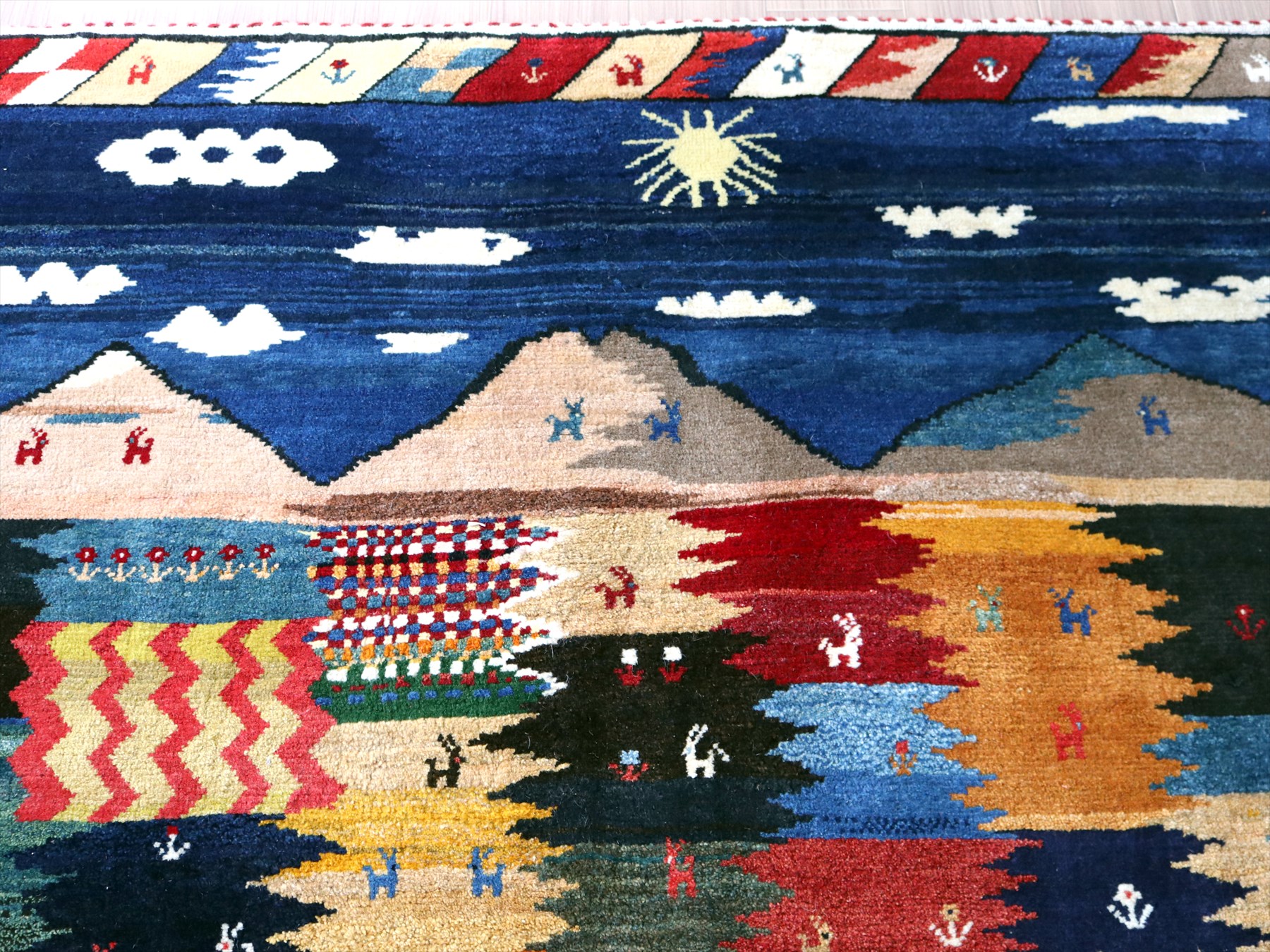 5. ギャッベ イラン産 ランドスケープ 239×160cm カシュカイ族の生活風景