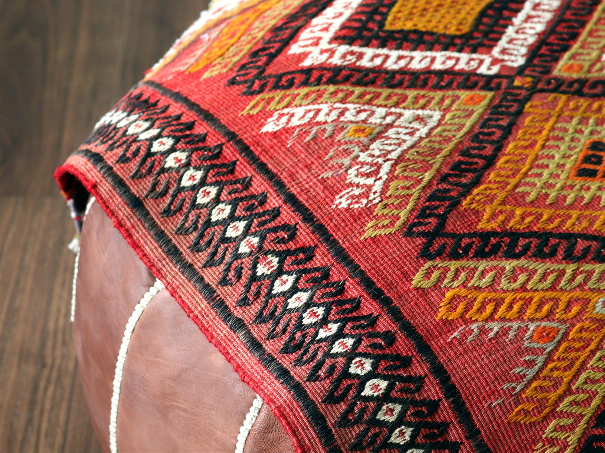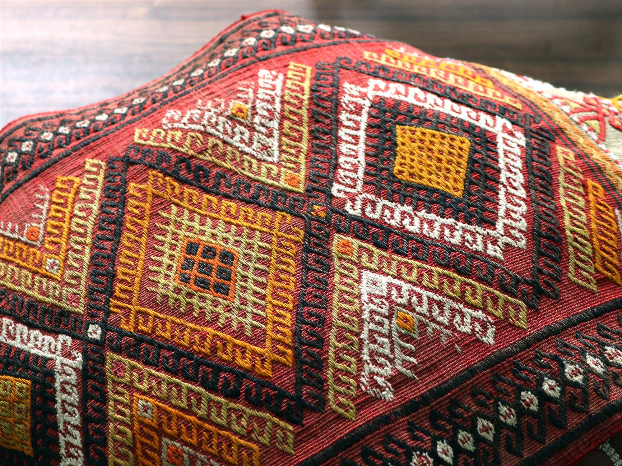 トルコ語で「枕」を意味するヤストゥクは、一般的にはクッションのように使われる細長の袋物のキリムです。もともとは、裏面にもキリムがあり、中綿に麦の穂などを入れて使うものですが、こちらは実際に縫い合わせてクッションとして使ったあとは見受けられません。