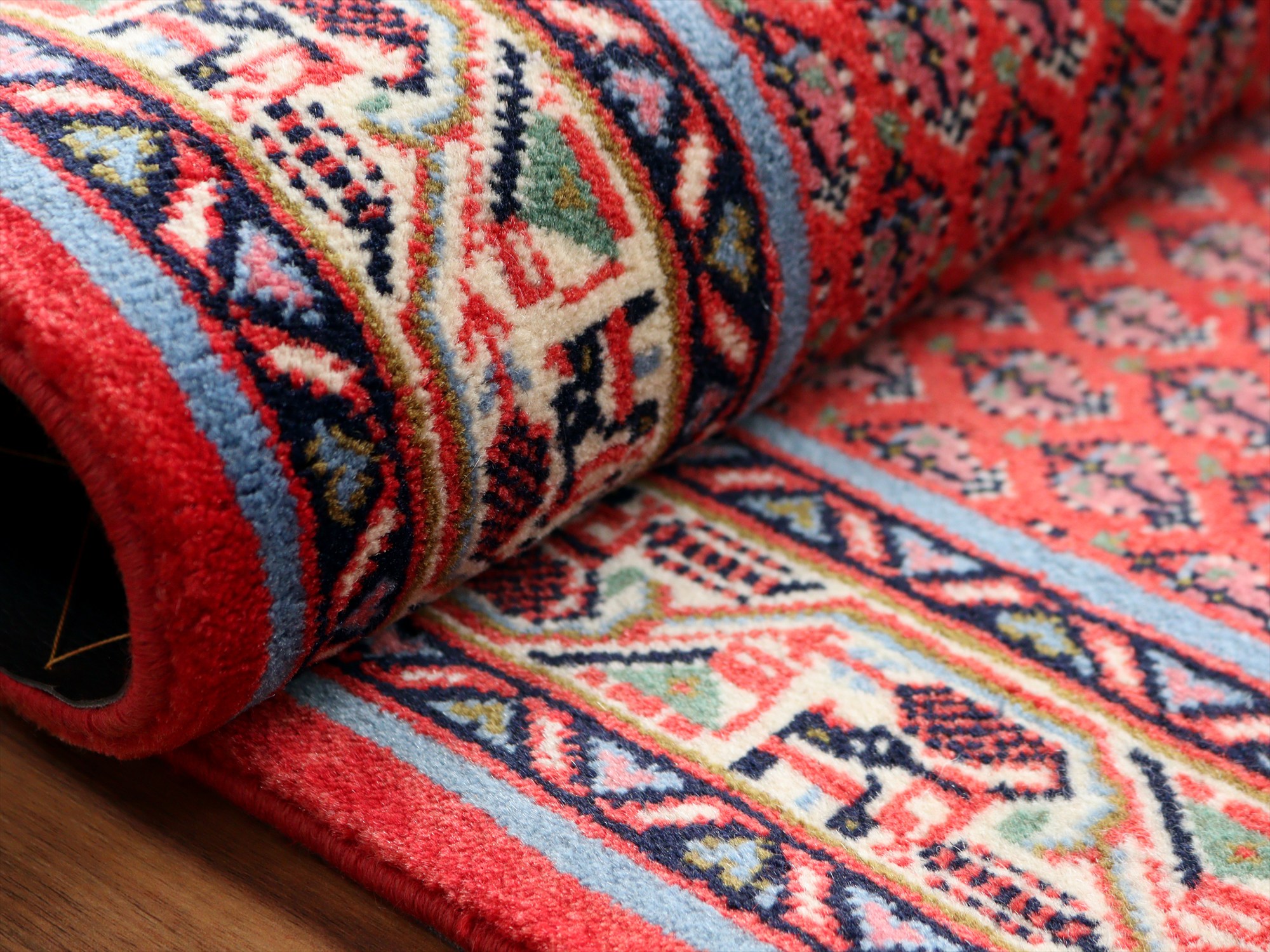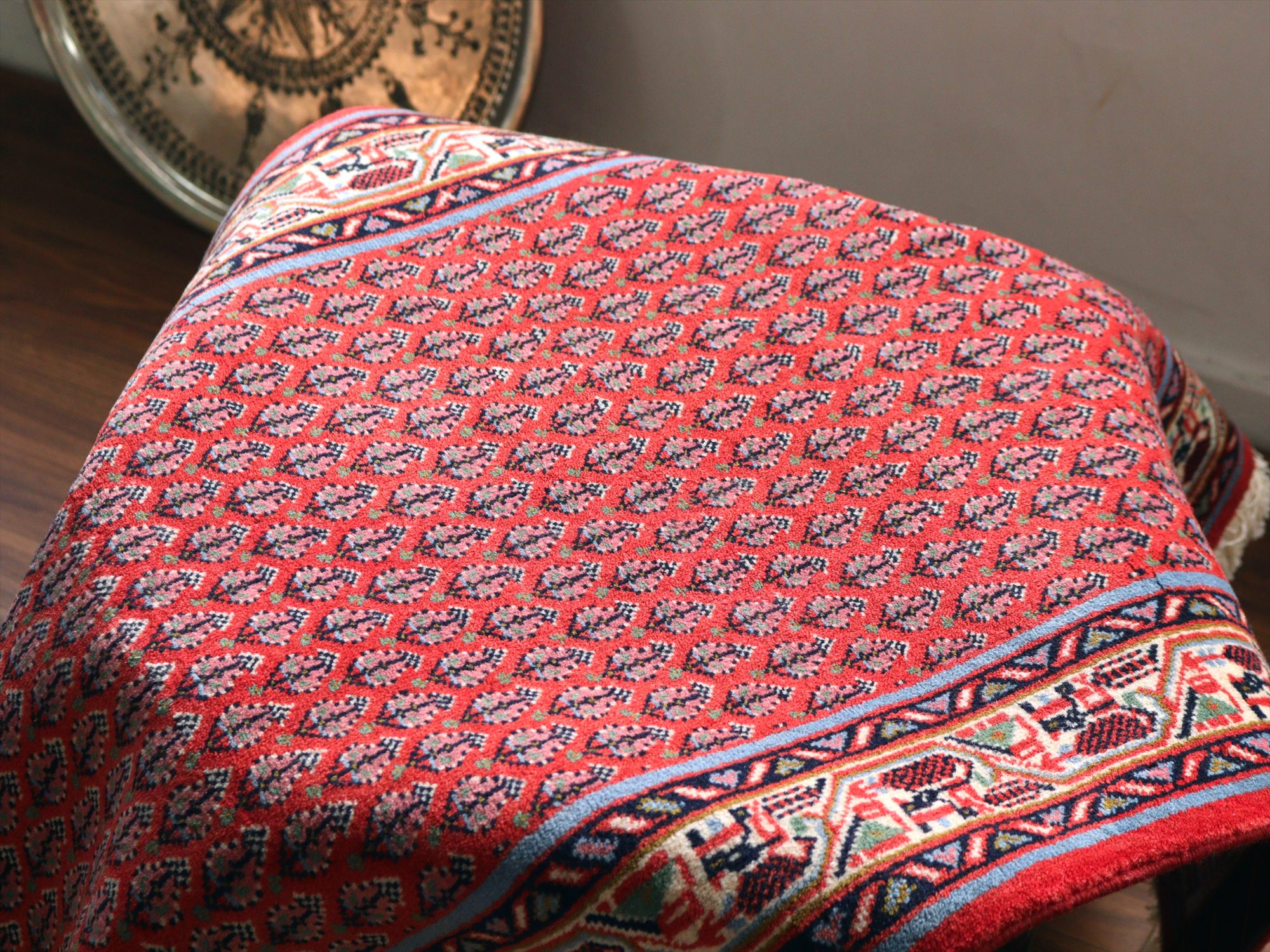 - イランの手織りラグ サルーク131×59cm ボテ ペイズリーのモチーフ レッド