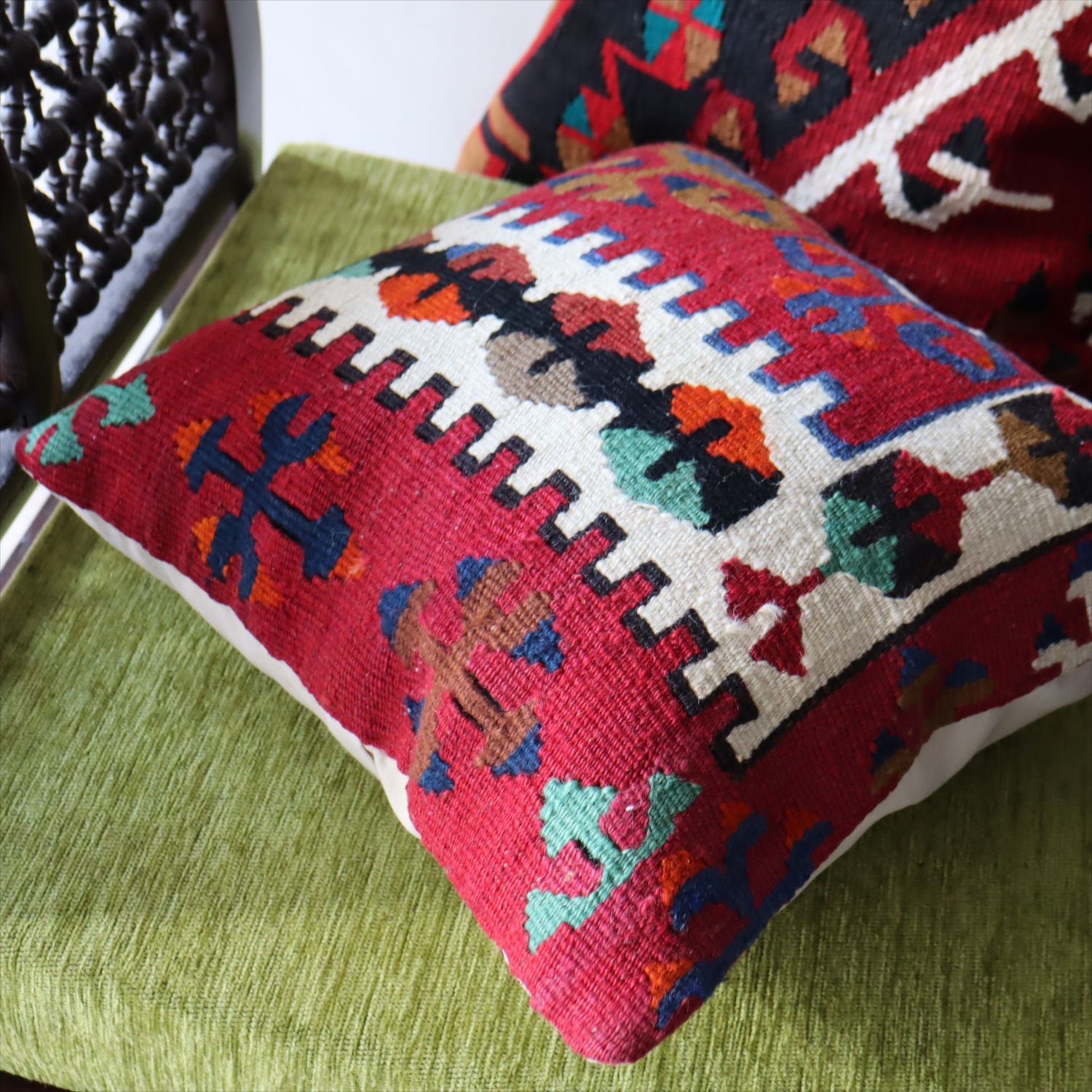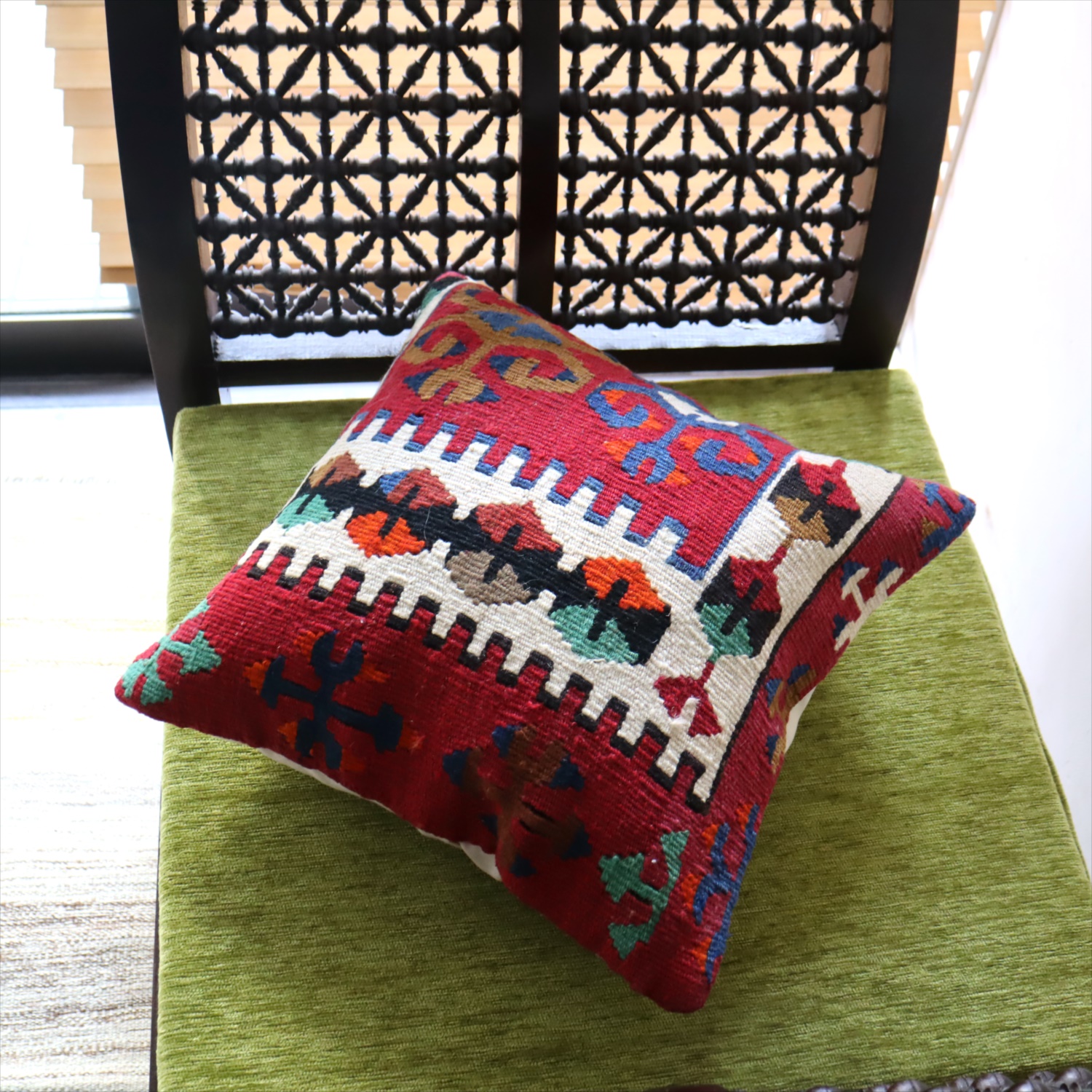 Key:Old Kilim, Kilim Cushion, Turkish Kilim, BOHO, Bohemian Decor, Vintage kilim, クッションカバー, オールドキリム, トルコ, ヴィンテージキリム, トライバルラグ, ピロー, ボヘミアンスタイル, BO-HO, ウール100%, 手織り, 一点もの, ガラタバザール