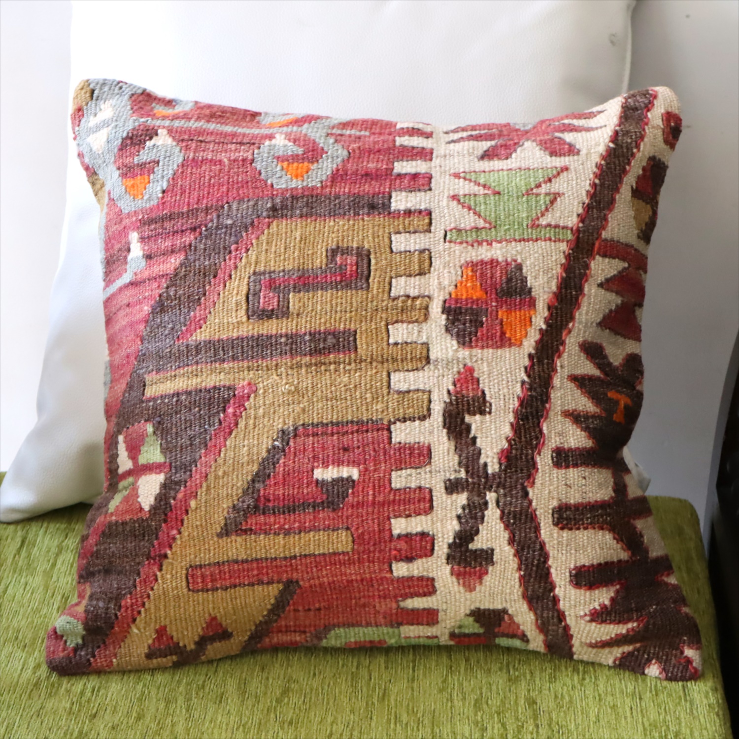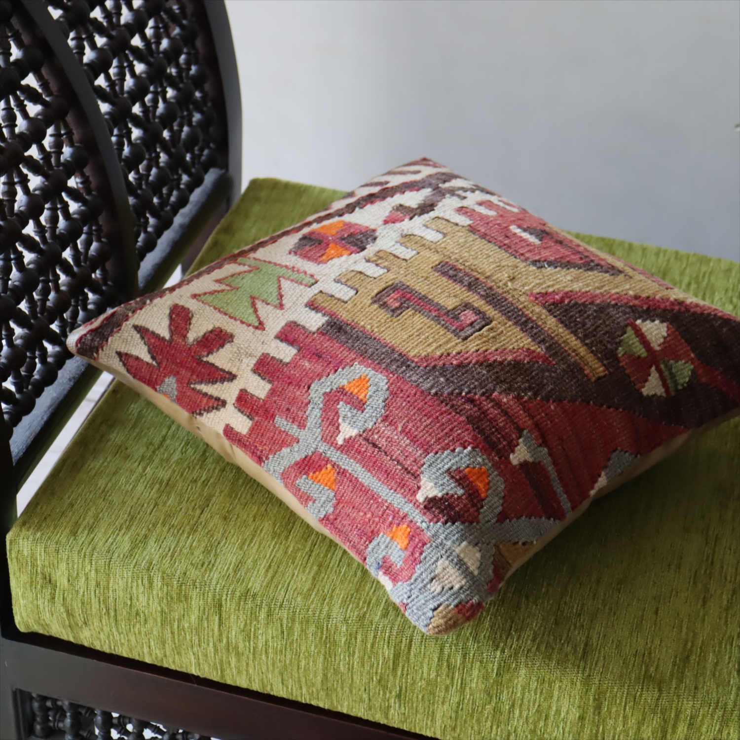 オールドキリム クッションカバー40×40cm カイセリ地方 チフカナットキリム