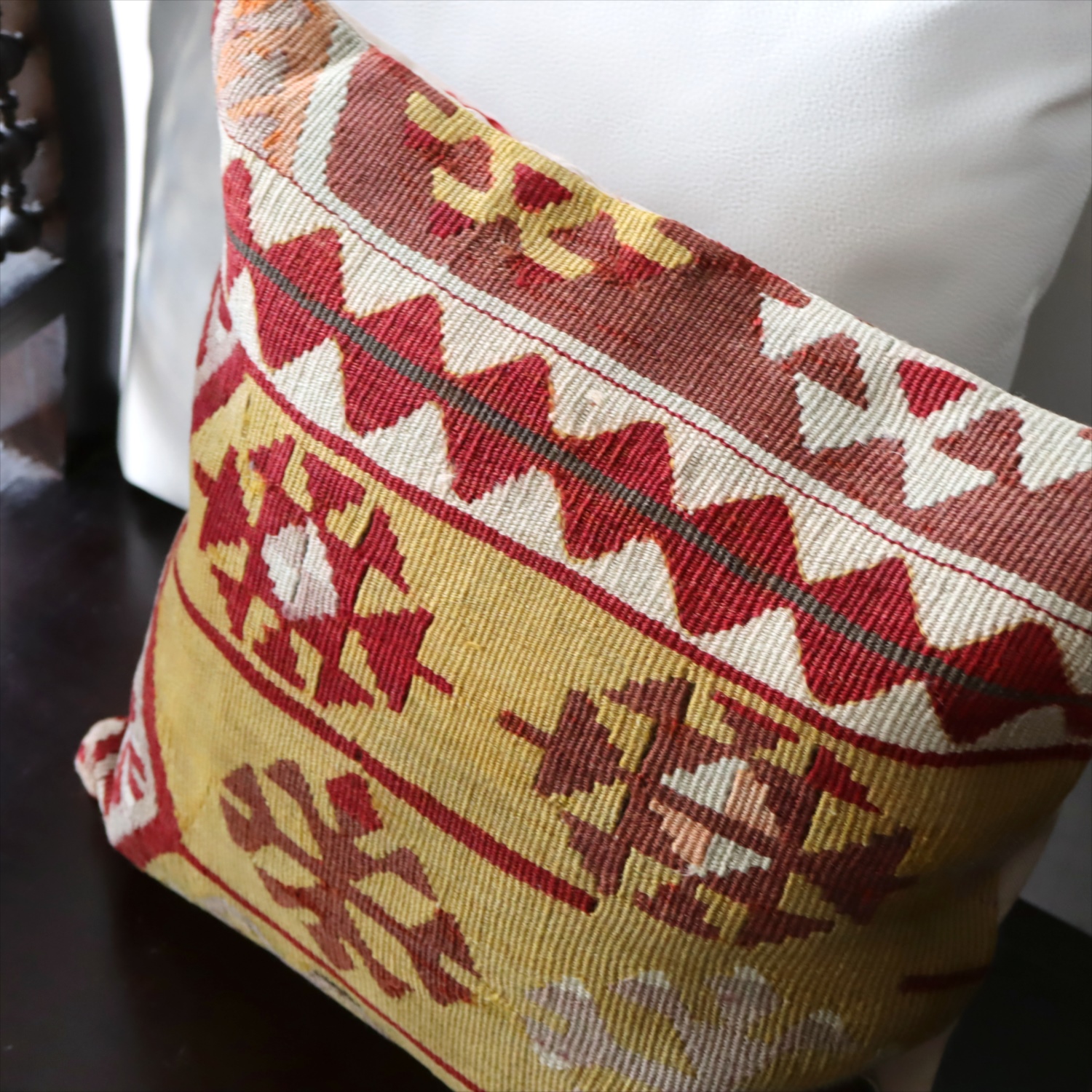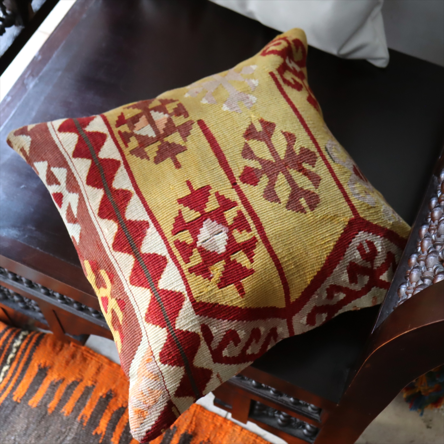 Key:Old Kilim, Kilim Cushion, Turkish Kilim, BOHO, Bohemian Decor, Vintage kilim, クッションカバー, オールドキリム, トルコ, ヴィンテージキリム, トライバルラグ, ピロー, ボヘミアンスタイル, BO-HO, ウール100%, 手織り, 一点もの, ガラタバザール