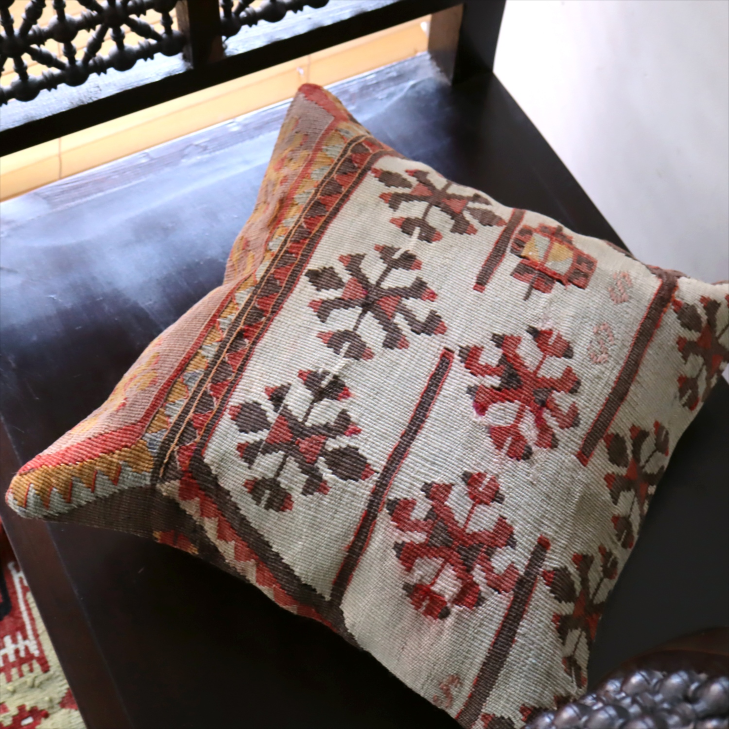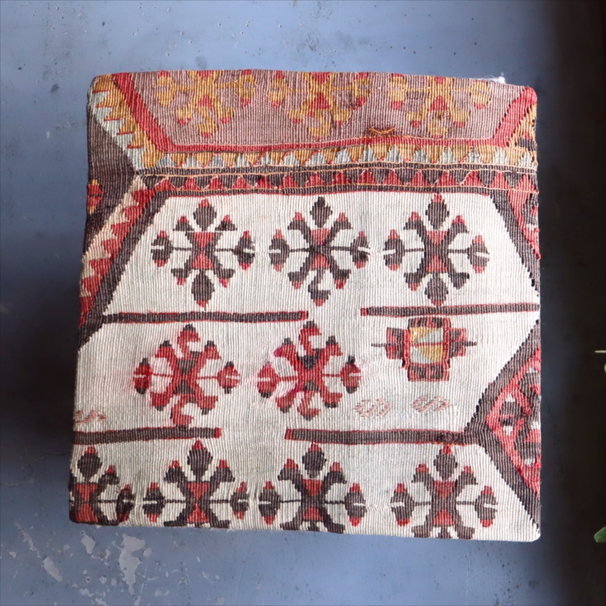 Key:Old Kilim, Kilim Cushion, Turkish Kilim, BOHO, Bohemian Decor, Vintage kilim, クッションカバー, オールドキリム, トルコ, ヴィンテージキリム, トライバルラグ, ピロー, ボヘミアンスタイル, BO-HO, ウール100%, 手織り, 一点もの, ガラタバザール