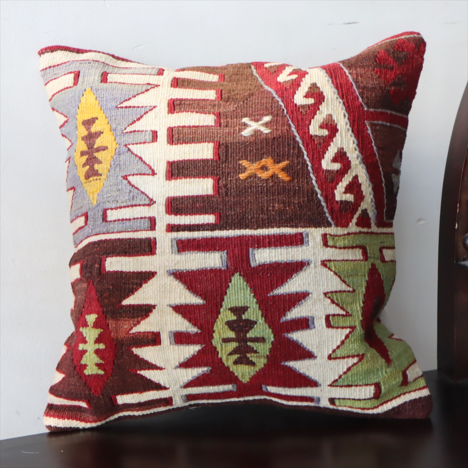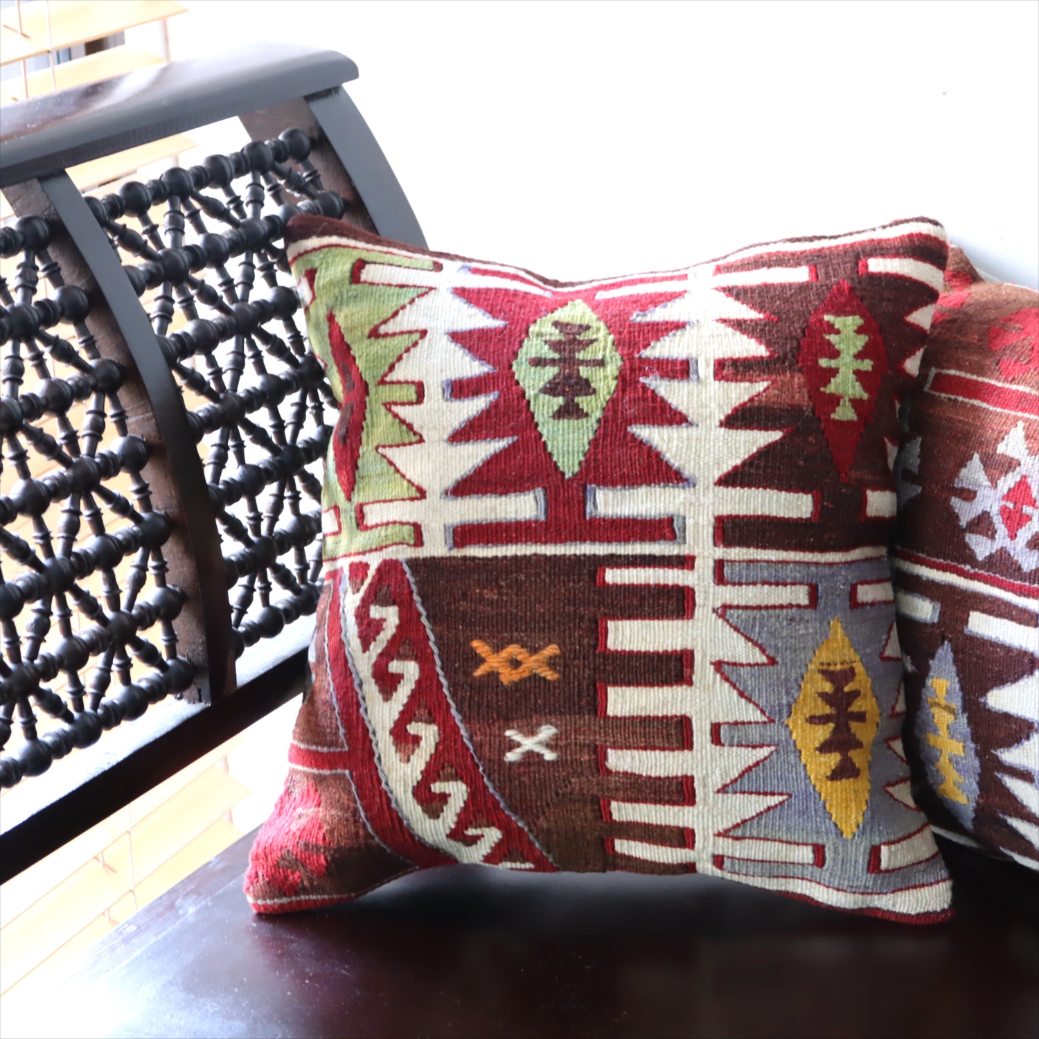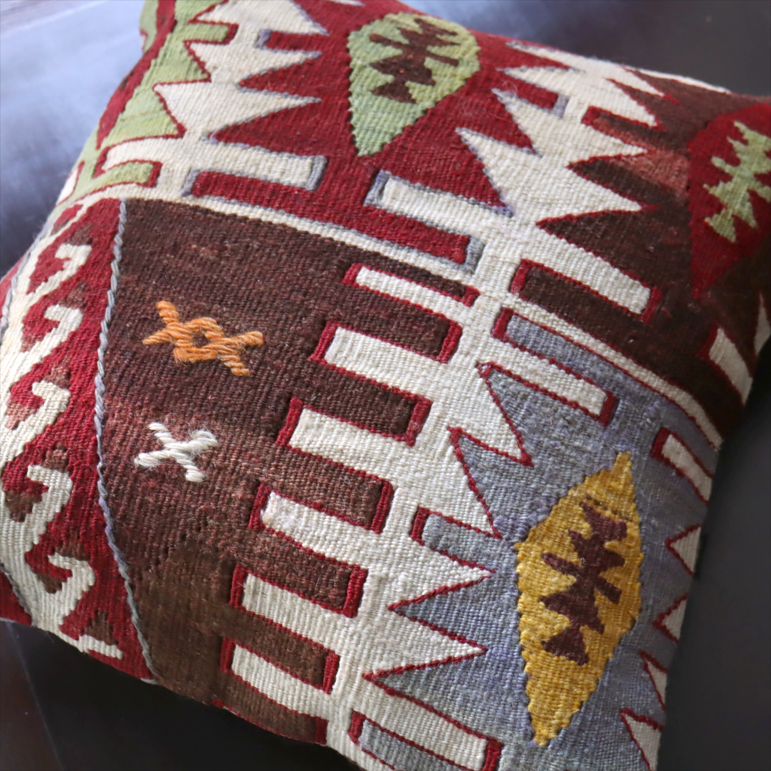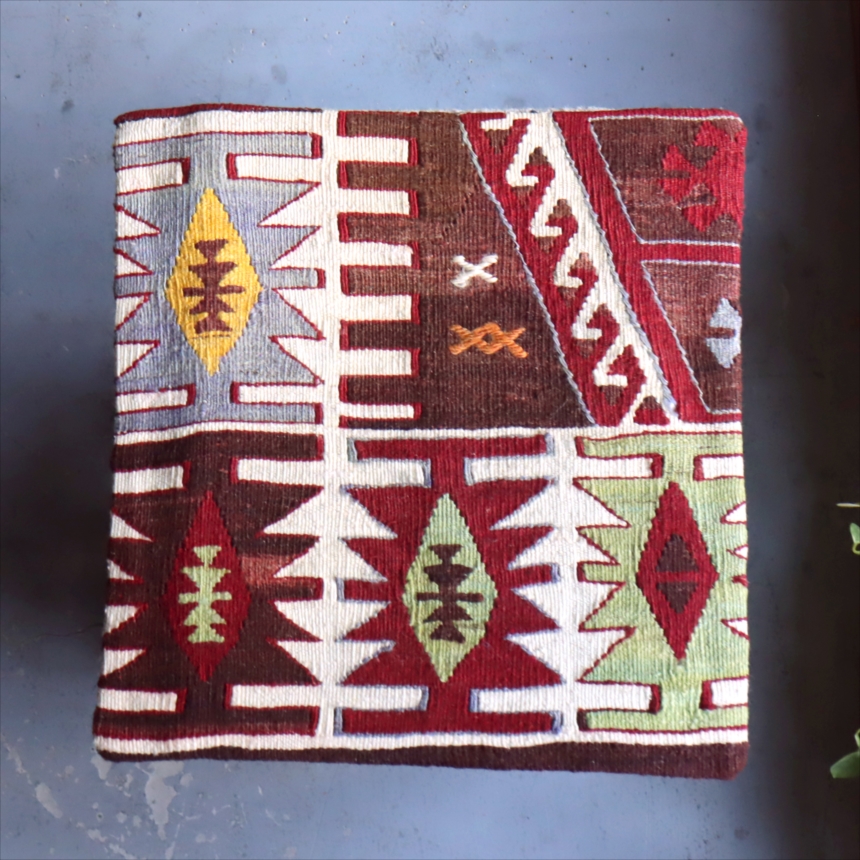 Key:Old Kilim, Kilim Cushion, Turkish Kilim, BOHO, Bohemian Decor, Vintage kilim, クッションカバー, オールドキリム, トルコ, ヴィンテージキリム, トライバルラグ, ピロー, ボヘミアンスタイル, BO-HO, ウール100%, 手織り, 一点もの, ガラタバザール
