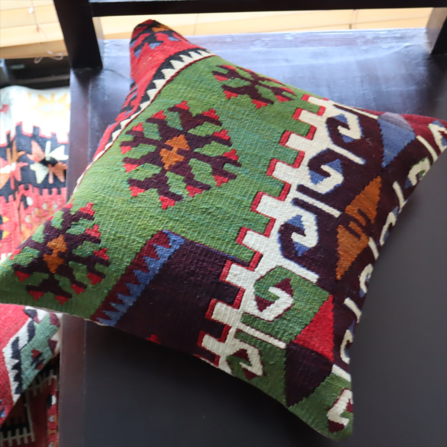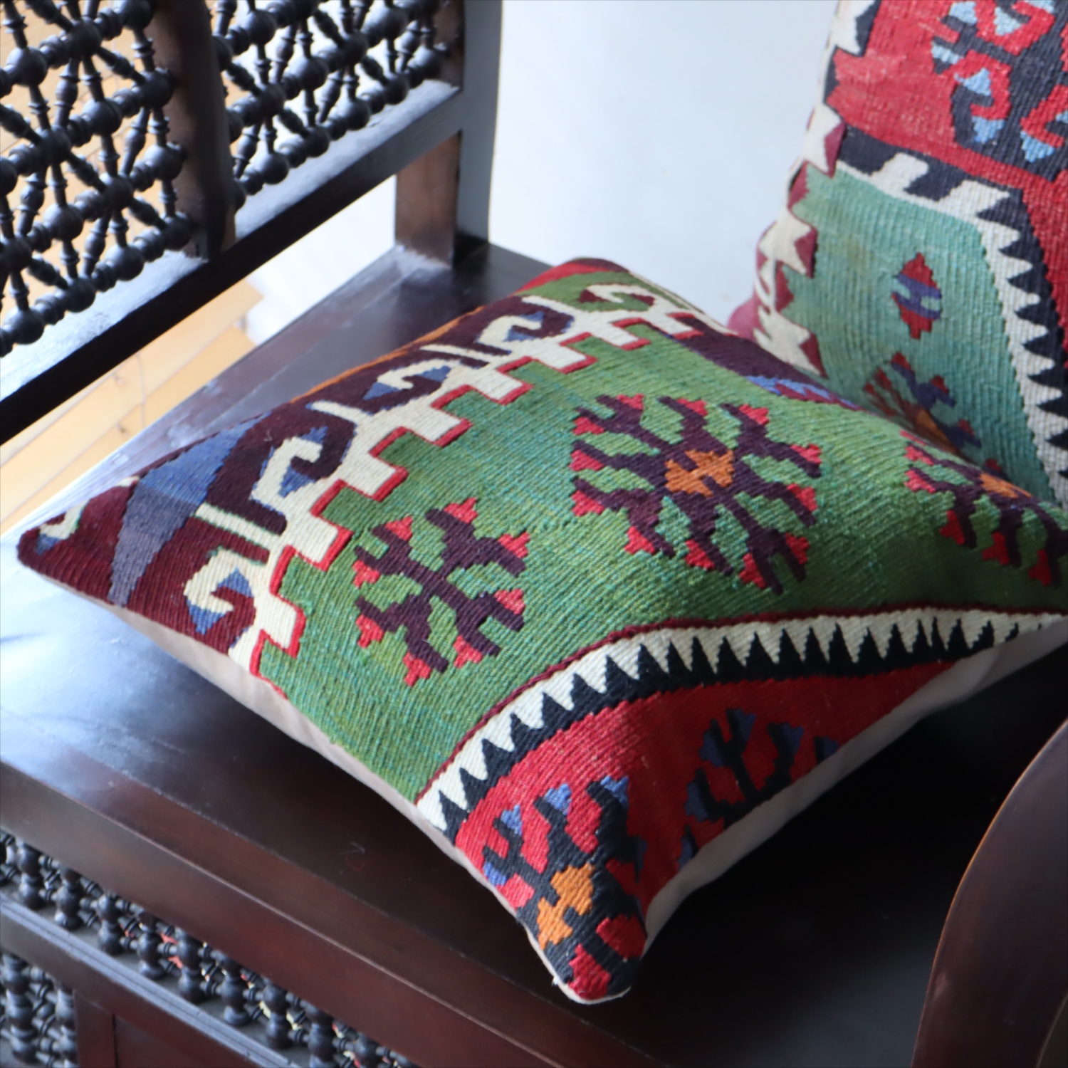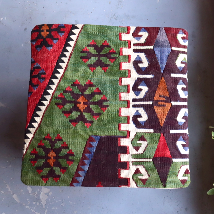 Key:Old Kilim, Kilim Cushion, Turkish Kilim, BOHO, Bohemian Decor, Vintage kilim, クッションカバー, オールドキリム, トルコ, ヴィンテージキリム, トライバルラグ, ピロー, ボヘミアンスタイル, BO-HO, ウール100%, 手織り, 一点もの, ガラタバザール