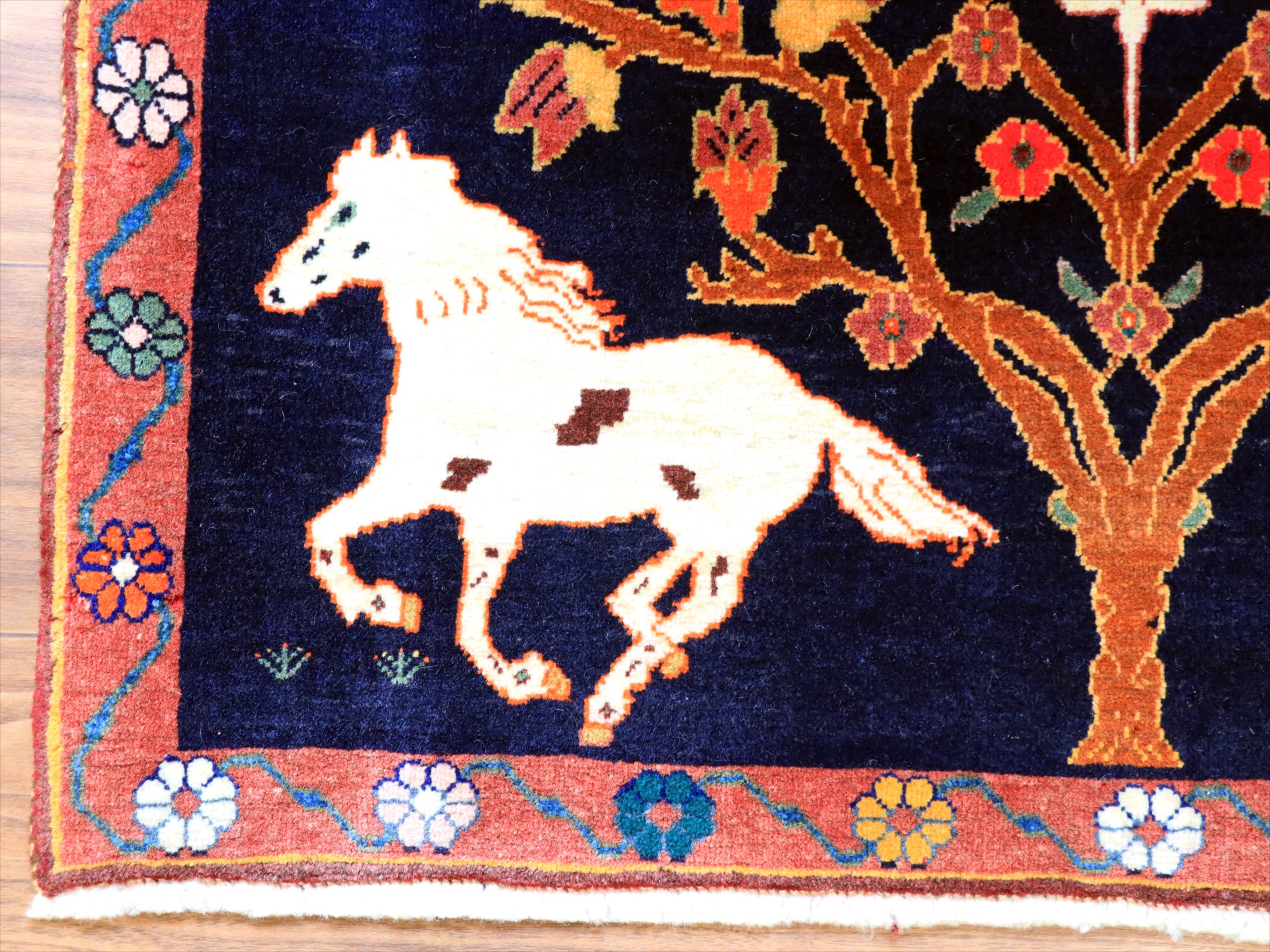 オールドギャッベ カシュカイ族の手織りラグ 89x53cm 生命の木 馬とライオン