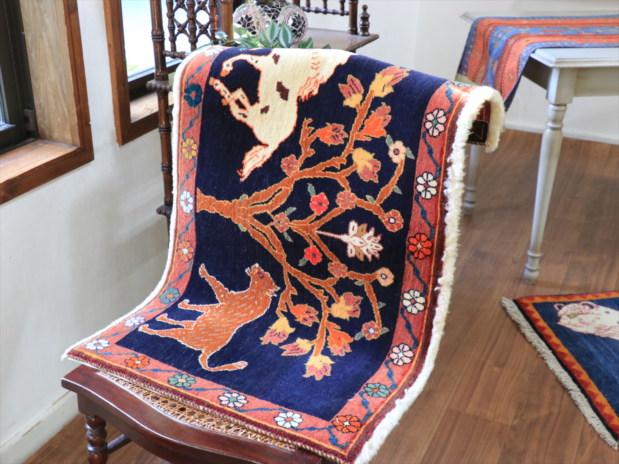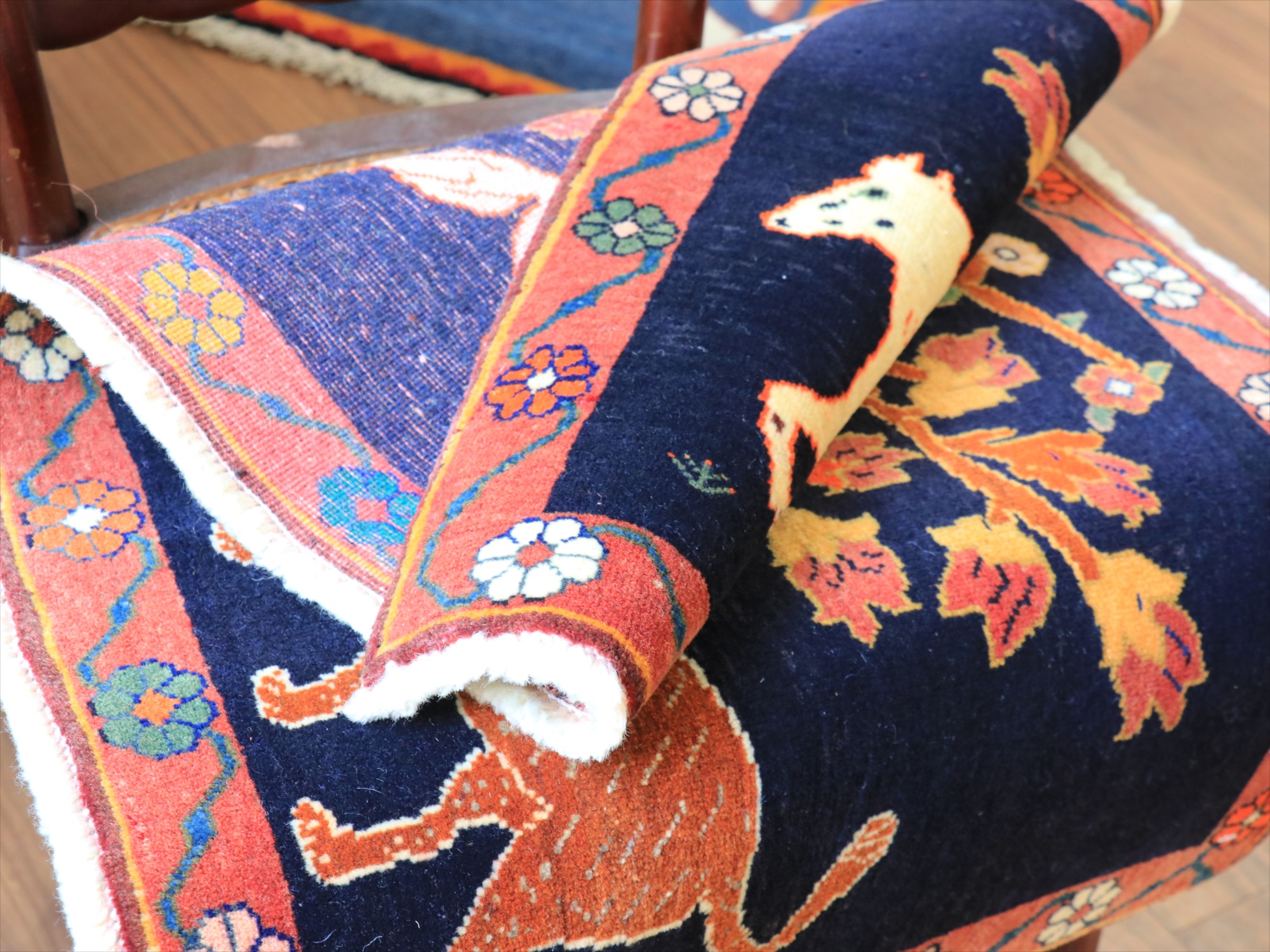 - オールドギャッベ カシュカイ族の手織りラグ 89x53cm 生命の木 馬とライオン