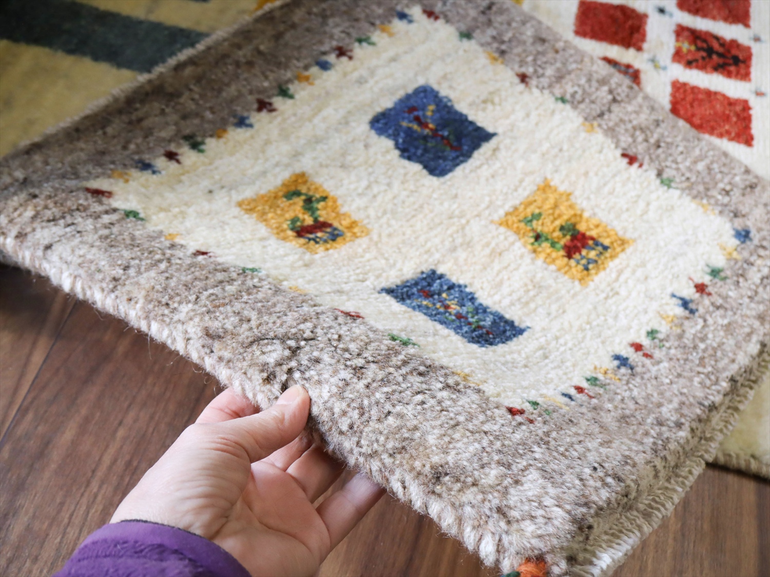 Key:ギャッベ ギャベ Gabbeh, イラン, 遊牧民, 手織り, 手紡ぎ, ペルシャ, 手織り絨毯, 座布団ギャッベ, ミニギャッベ, 無染色,アイボリー, 羊毛, グレー, ベージュ, 1点もの, 現品販売, ウール100%, 無染色 天然繊維 ミニギャベ, Gabbeh, Iran Persian rug, Hand Knotted, ガラタバザール
