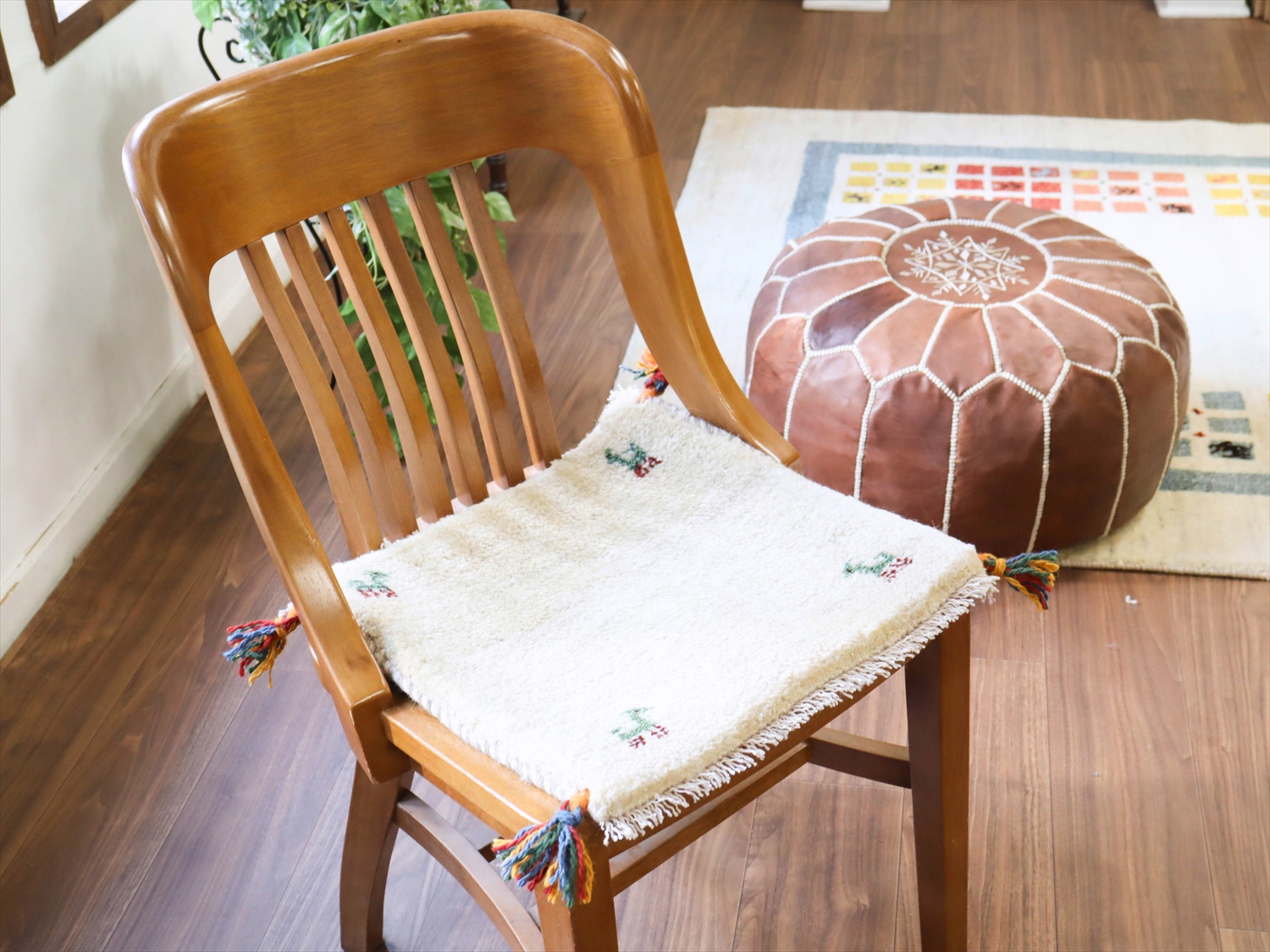 ギャッベ イラン産手織り 座布団サイズ 40x41cm ナチュラルアイボリー 無地 シンプル