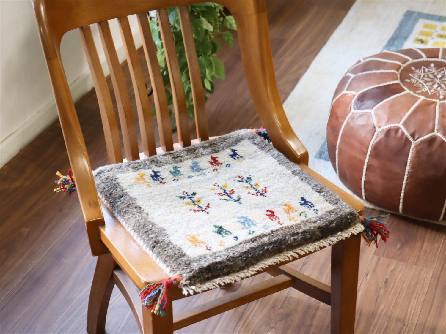 ギャッベ イラン産手織り 座布団サイズ 41x38cm ナチュラルアイボリー/グレー