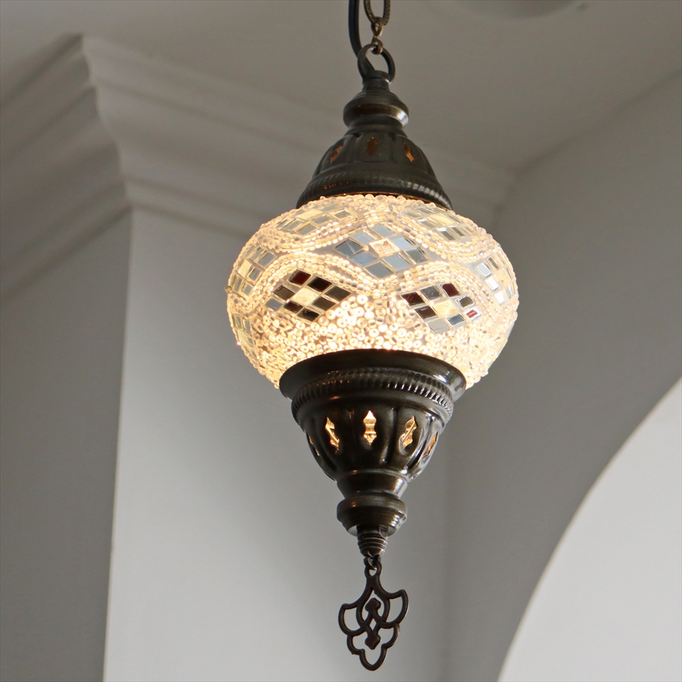 - トルコランプ モザイクランプ 直径13cm 全高67cm ホワイト/アーガイル ペンダントライト