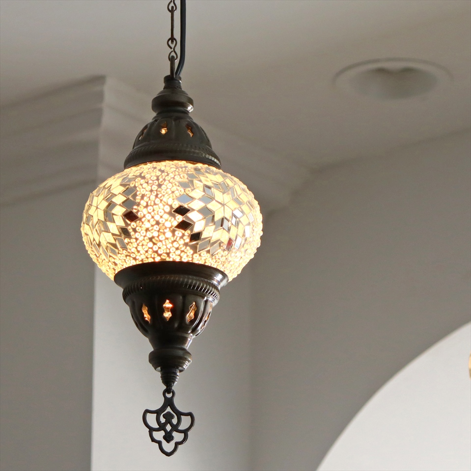 - トルコランプ モザイクランプ 直径13cm 全高67cm ホワイト ペンダントライト
