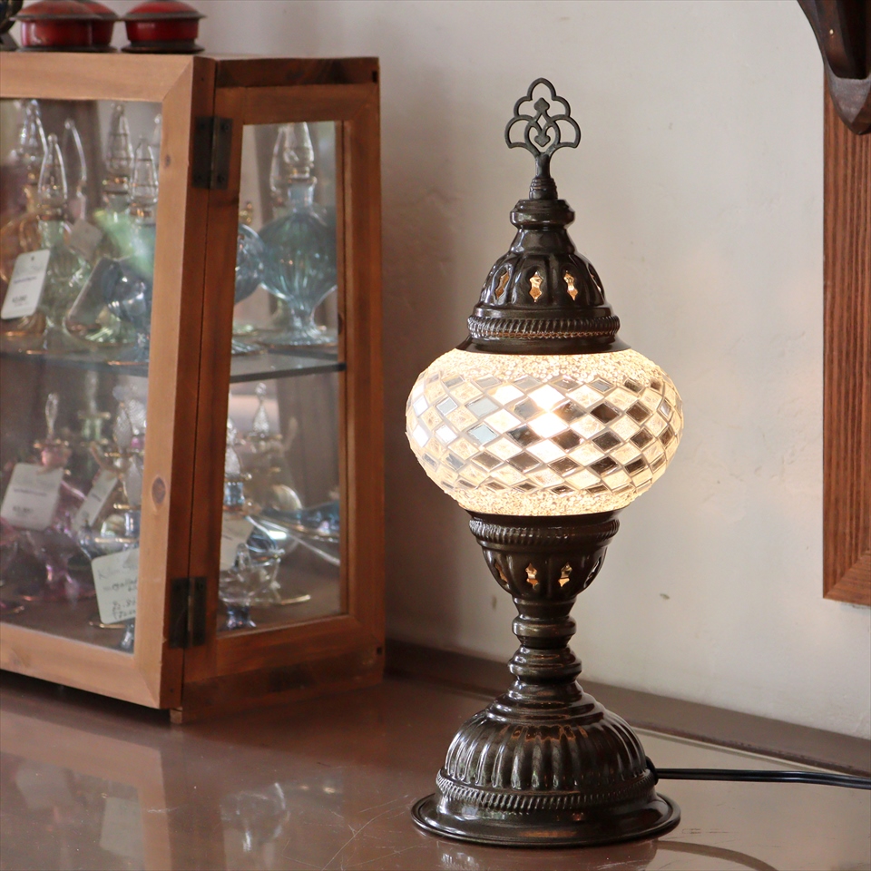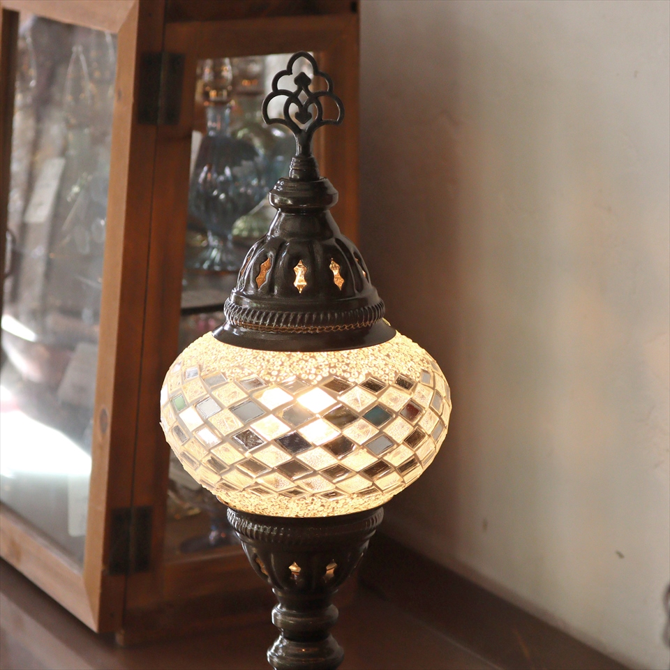 トルコランプ モザイクテーブルランプ 直径13cm 全高36cm ホワイト