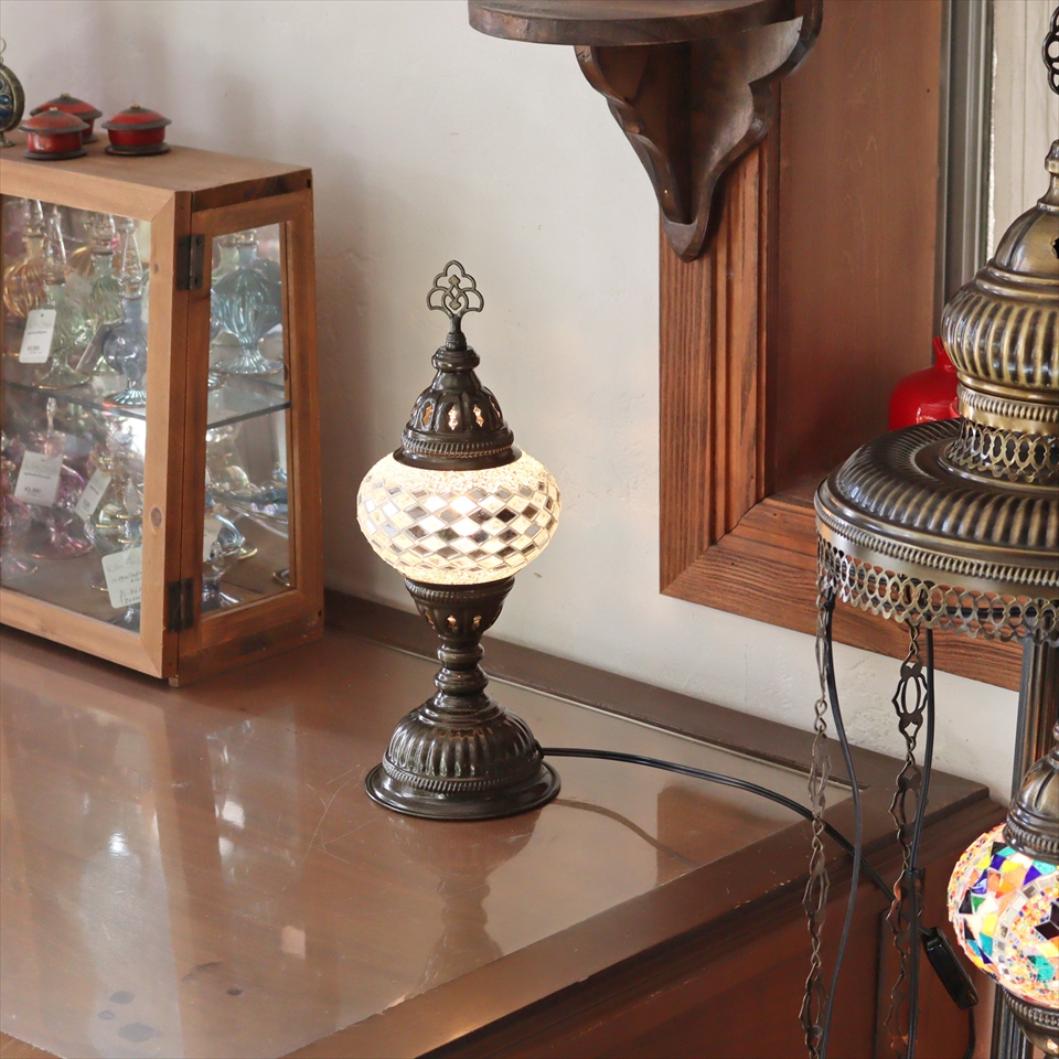 - トルコランプ モザイクテーブルランプ 直径13cm 全高36cm ホワイト