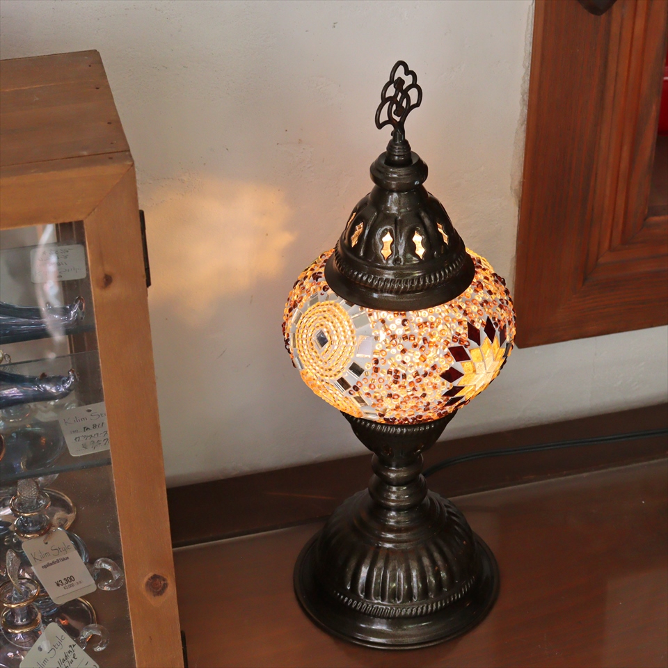 - トルコランプ モザイクテーブルランプ 直径13cm 全高36cm アンバー