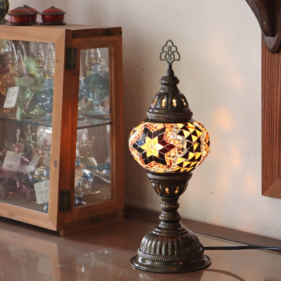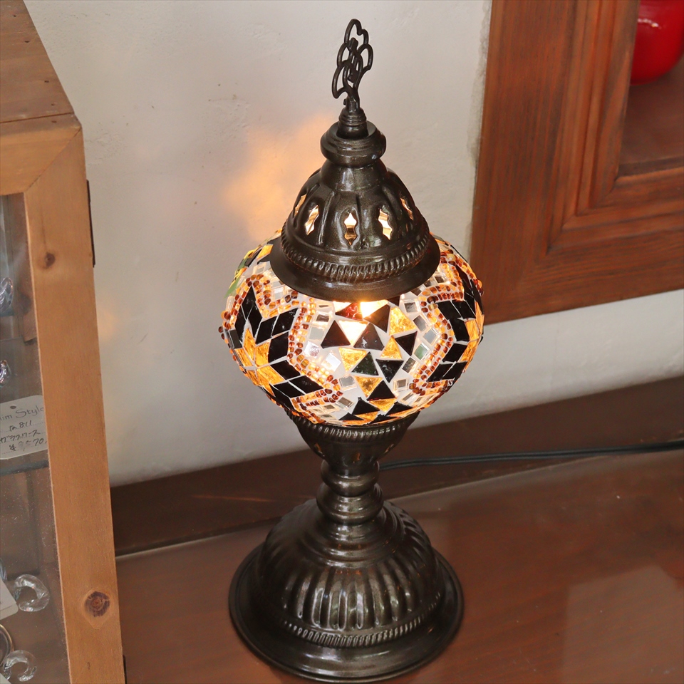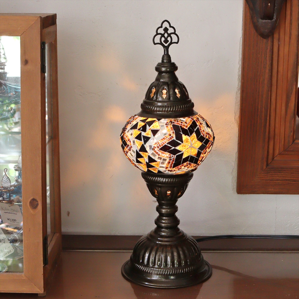 - トルコランプ モザイクテーブルランプ 直径13cm 全高36cm アンバー