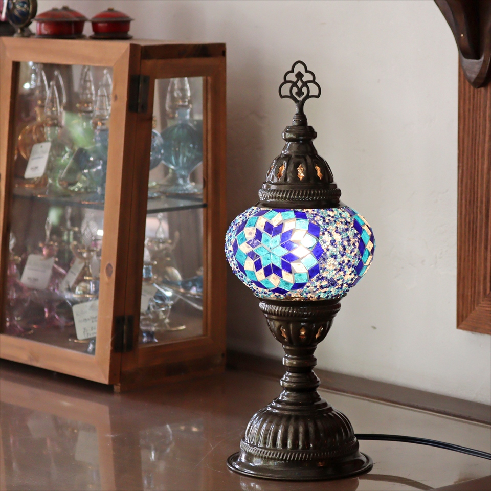 - トルコランプ モザイクテーブルランプ 直径13cm 全高36cm ブルー