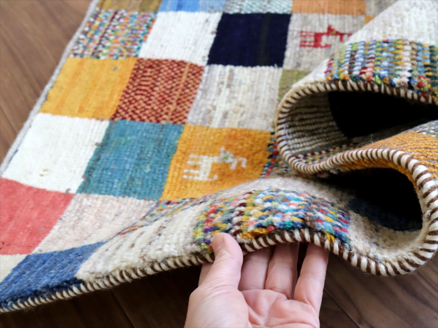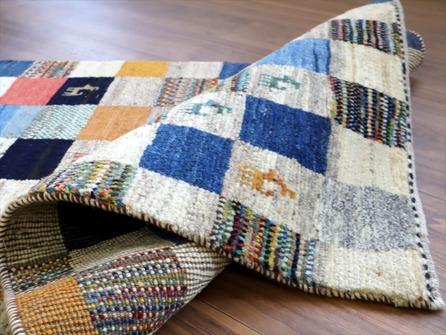 ギャッベ ノマド 120x78cm カラフルなモザイクタイル