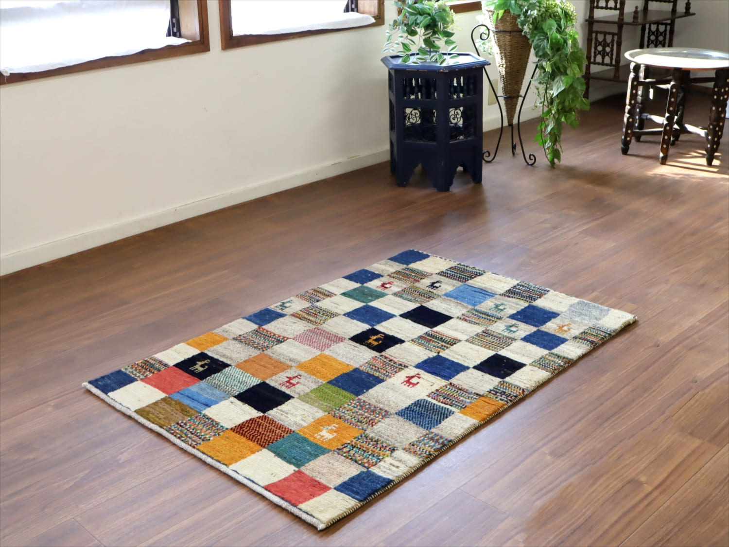 Key:Gabbeh, Nomad, Tribal rug, Persian rug, Fars, Area rug, Hand knotted, Pure Wool, ギャッベ, 手織り, ノマド, 遊牧民, カシュカイ族, 草木染, ウール100%, イラン直輸入, 玄関マット, 部族絨毯, トライバルラグ