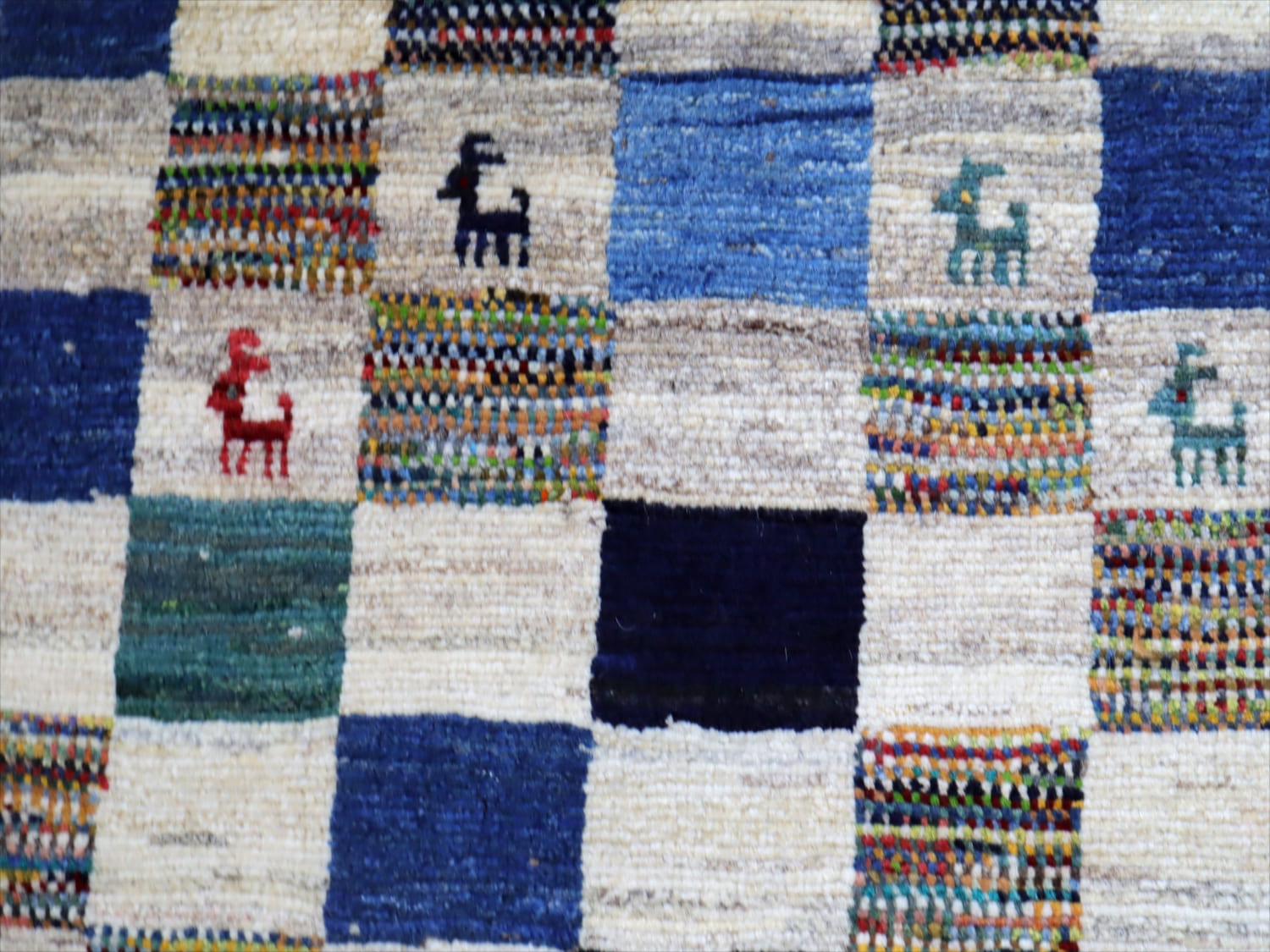 【ギャッベ・ノマド - Gabbeh Nomad -】遊牧民を意味するノマドと名付けられたギャッベ・コレクション。元来、ギャッベとは、毛足の長いラグを意味し、このクラスの織りの織物のことをいいます。ふかふかした厚みがあります。じゅうたんの結び目は10cmの間に20~25目ほどで、ギャッベの中で最もベーシックな織りのグレードです。デザインは、遊牧民本来の自由な感性や、長く織り継がれてきた伝統を生かしたものが多く、シンプルな単色のものからカラフルなタイル柄など、様々なデザインが織られています。ヤギやヒツジなどの動物、生命の樹などの定番モチーフが織り込まれていることが多く、一般的にイメージされる「ギャッベらしさ」が一番感じられるスタンダードなクラスです。