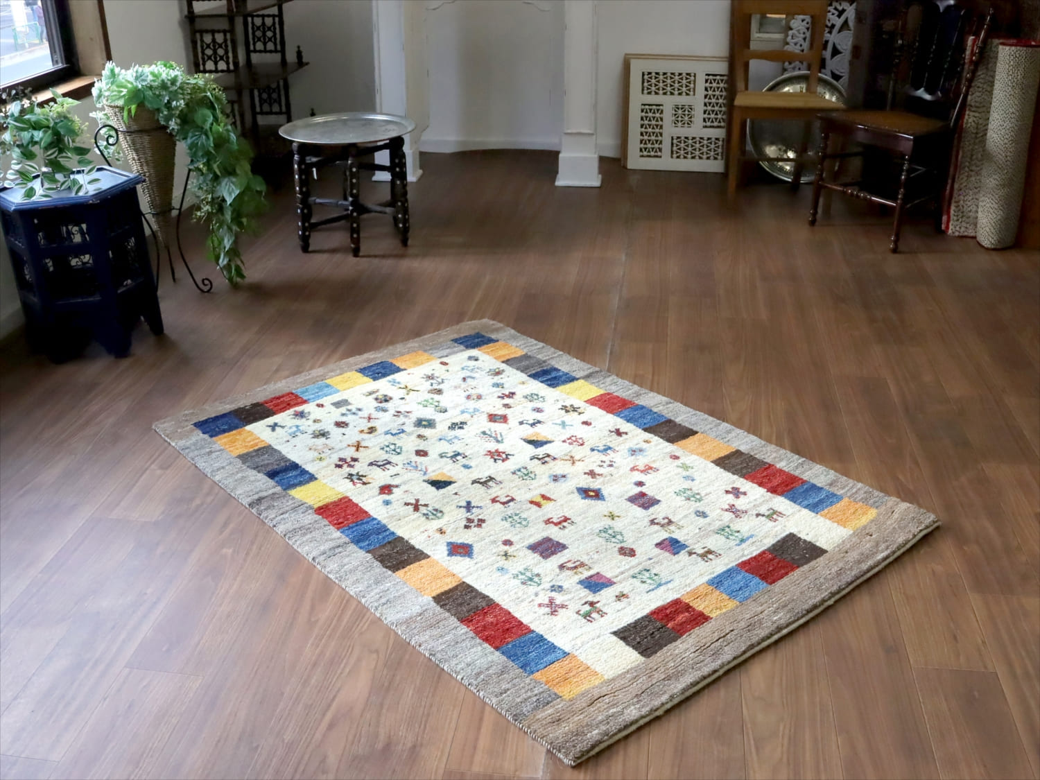 Key:ラグ,リビング,居間,カーペット,ソファ前,rug,carpet,ギャッベ,ギャベ,手織り,hand weaven, イラン直輸入, カシュカイ, ウール製, Shiraz, Area Rug, Handmade,,東京、中野区,実店舗